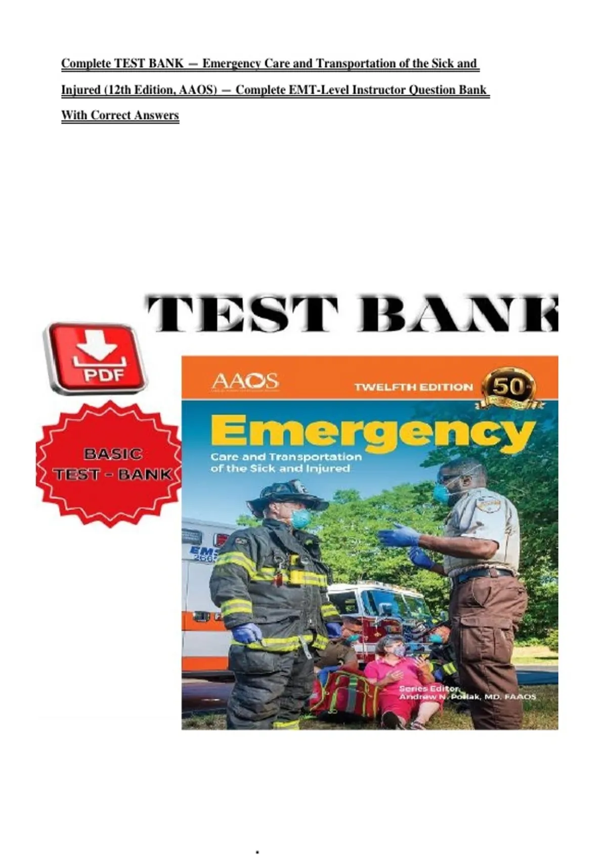 Injured (12th Edition, AAOS) — Complete EMT-Level Instructor Question Bank