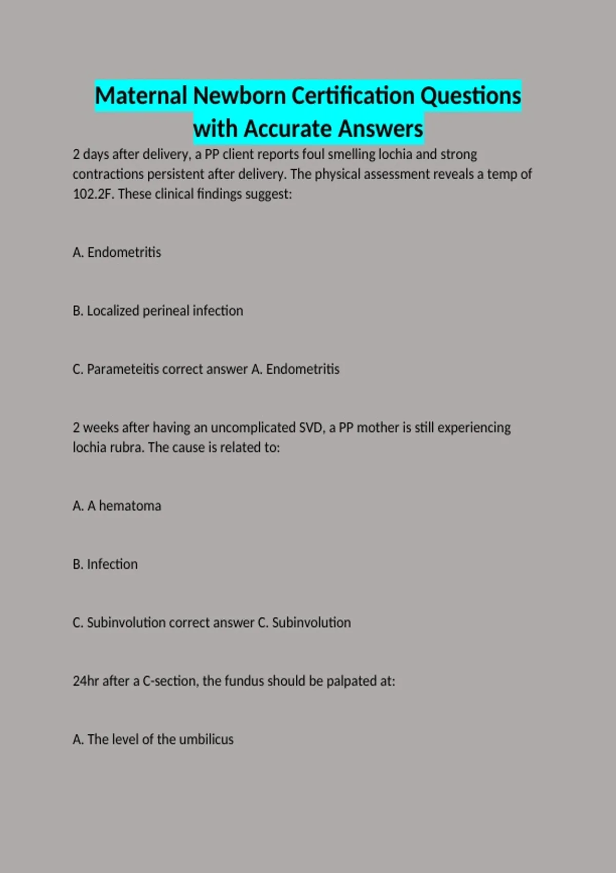 contractions persistent after delivery. The physical assessment reveals a temp of