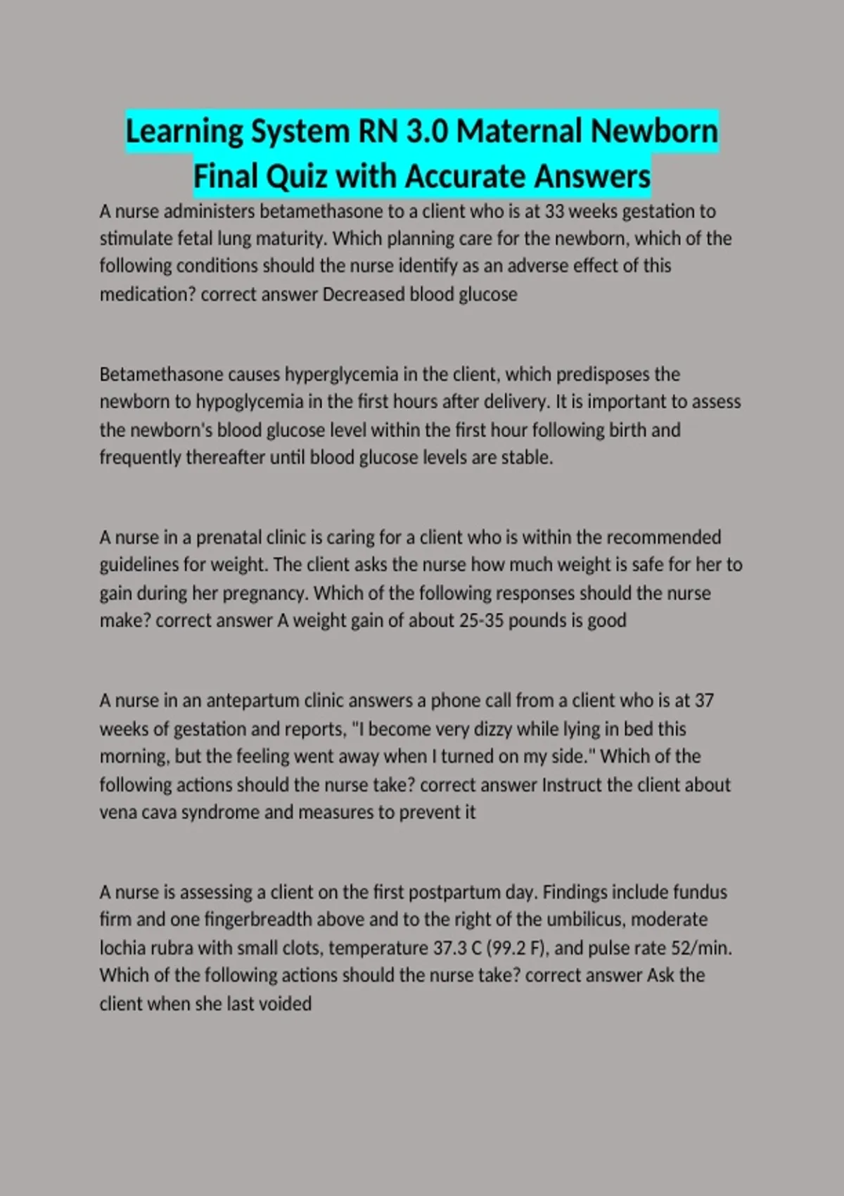A nurse in an antepartum clinic answers a phone call from a client who is at 37