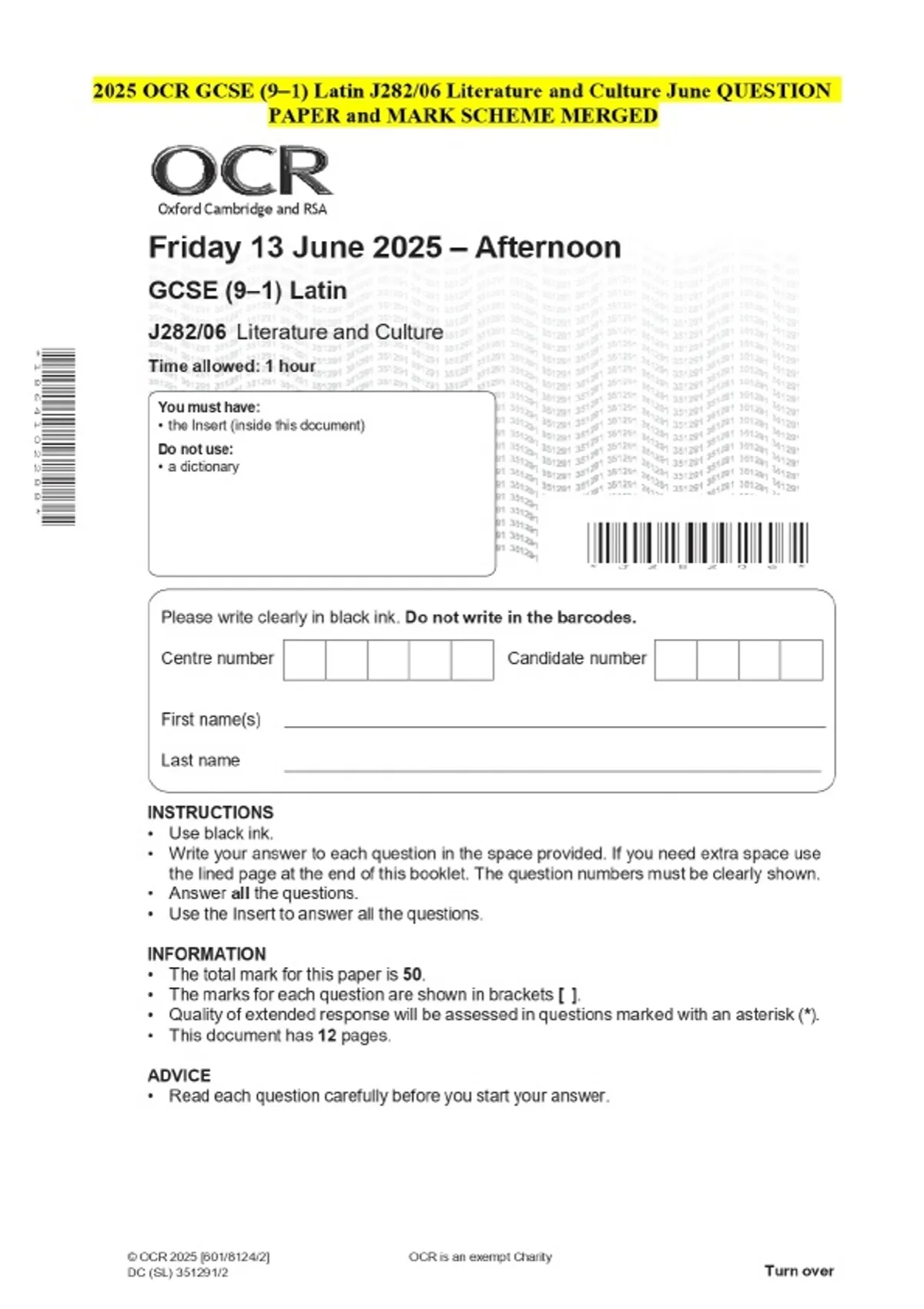 2025 OCR GCSE (9–1) Latin J282/06 Literature and Culture June QUESTION PAPER and MARK SCHEME MERGED