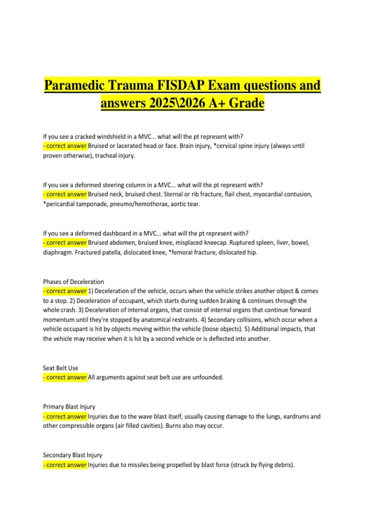- correct answer Injuries due to the wave blast itself, usually causing damage to the lungs, eardrums and