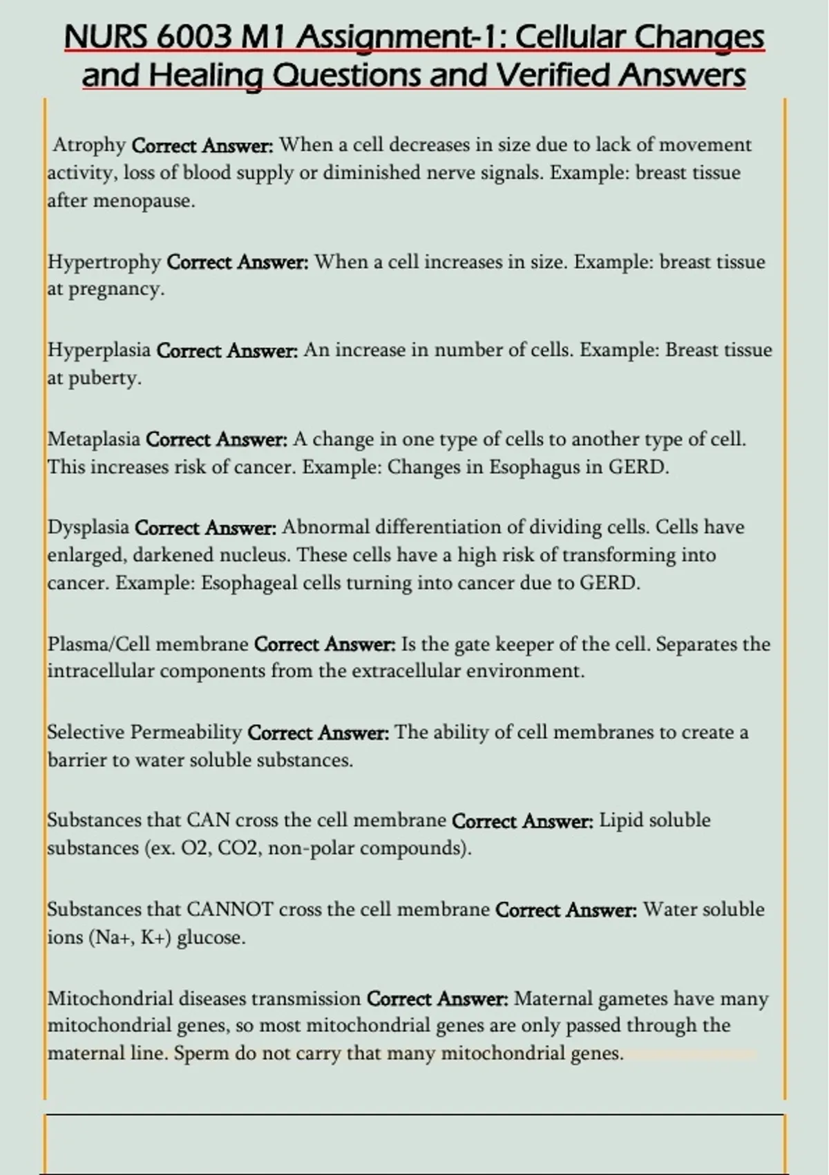 NURS 6003 M1 Assignment-1: Cellular Changes and Healing Questions and Verified Answers
