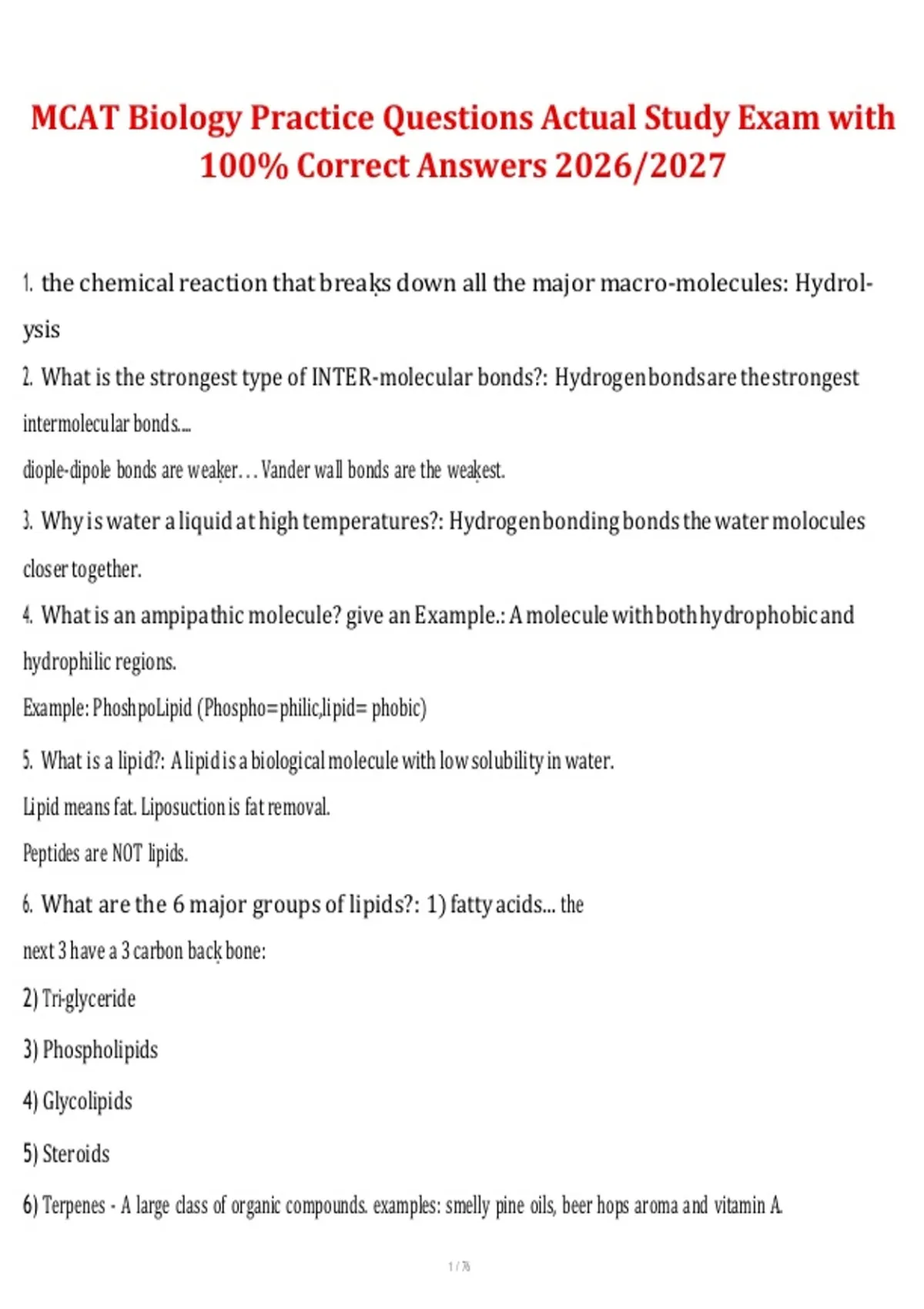 5. What is a lipid?: A lipid is a biological molecule with low solubility in water.