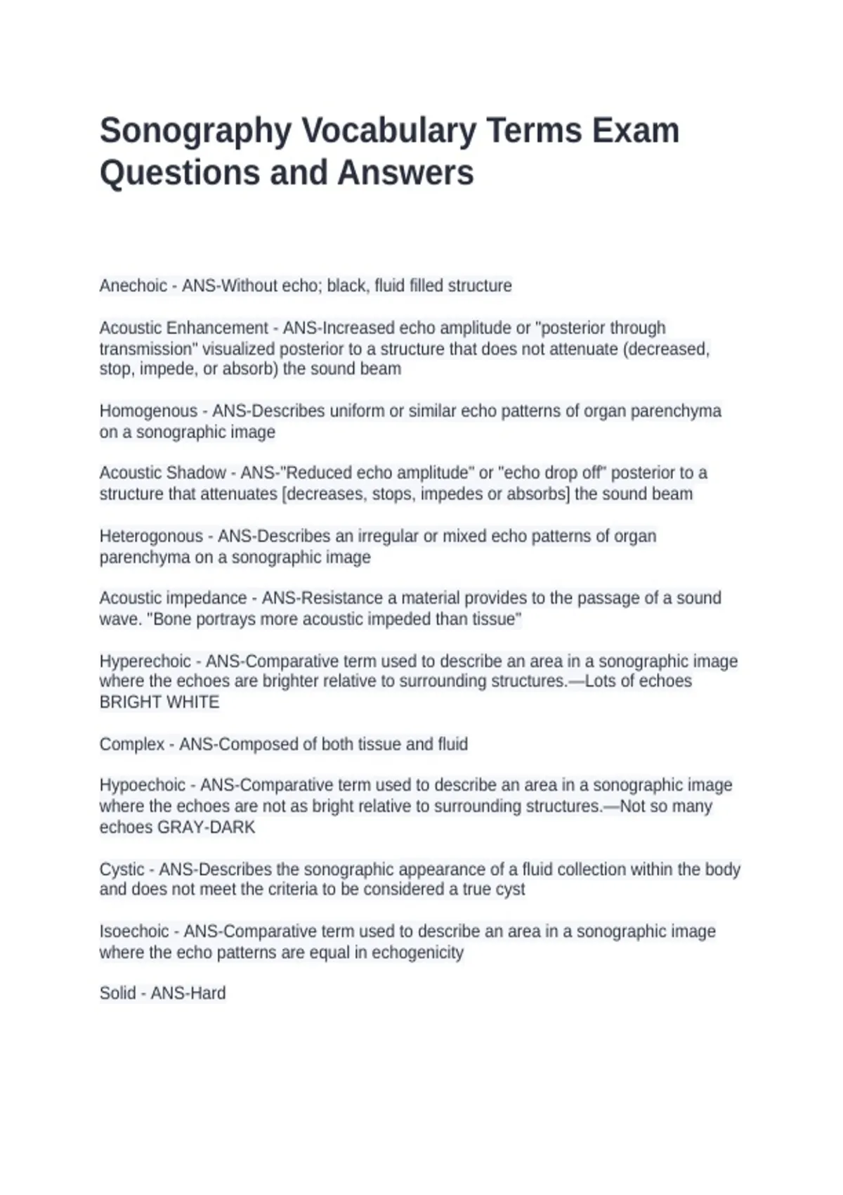 Hyperechoic - ANS-Comparative term used to describe an area in a sonographic image