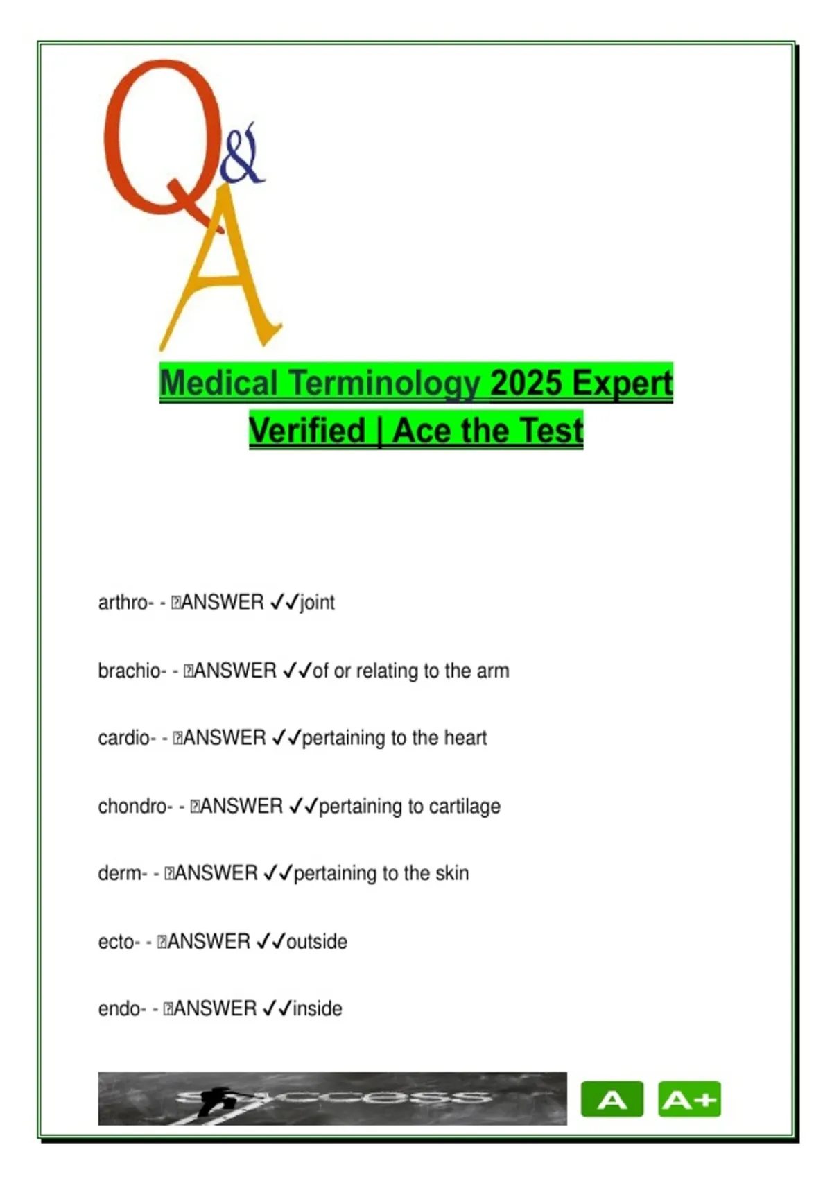 chondro- - 🧠ANSWER ✔✔pertaining to cartilage