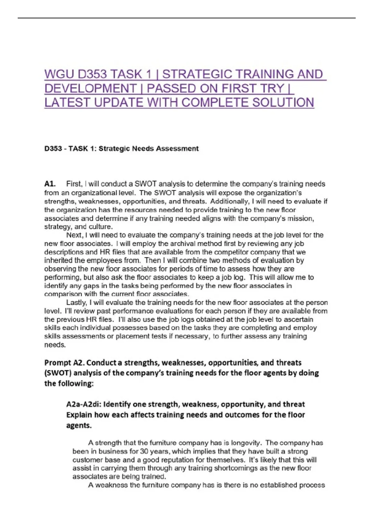 WGU D353 TASK 1 | STRATEGIC TRAINING AND DEVELOPMENT | PASSED ON FIRST TRY | LATEST UPDATE WITH COMPLETE SOLUTION