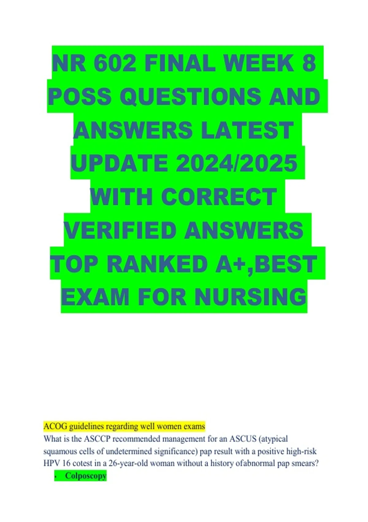 NR 602 Final Exam Week 8 — Latest Possible Questions & Verified Answers | A+ Top-Ranked Nursing Exam Guide | 2024–2025 Updated