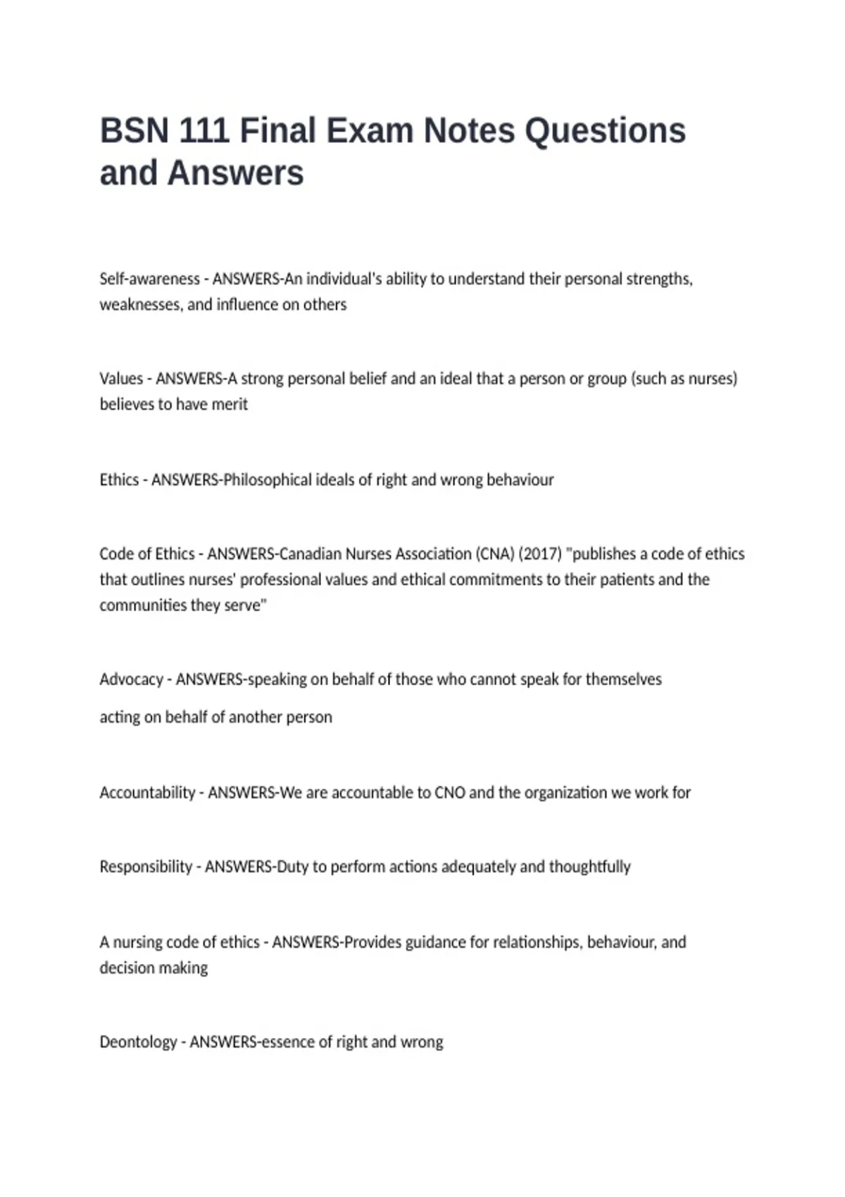 Values in the CNA code of ethics - ANSWERS-•Providing safe, compassionate, competent, and
