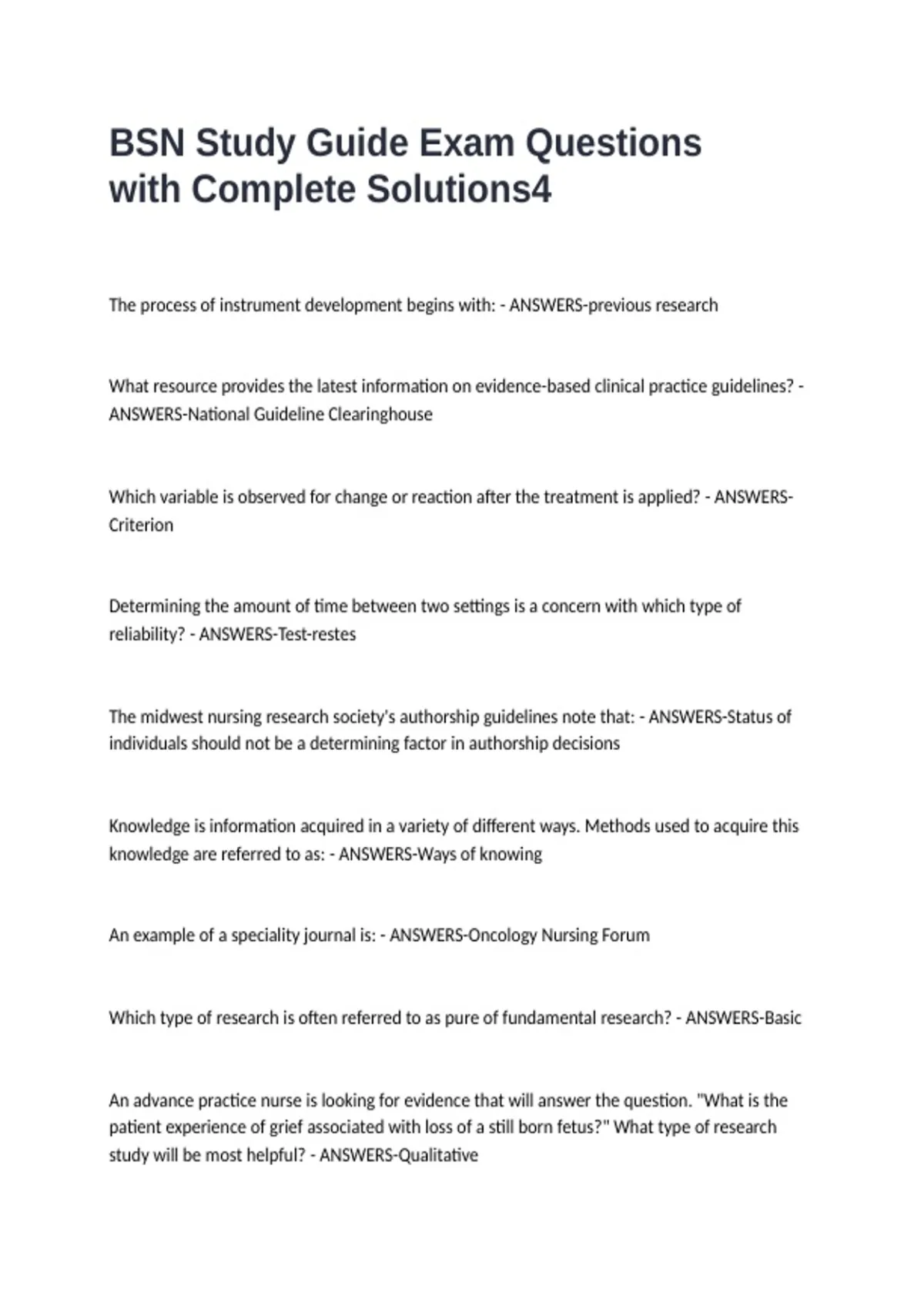 BSN Study Guide Exam Questions