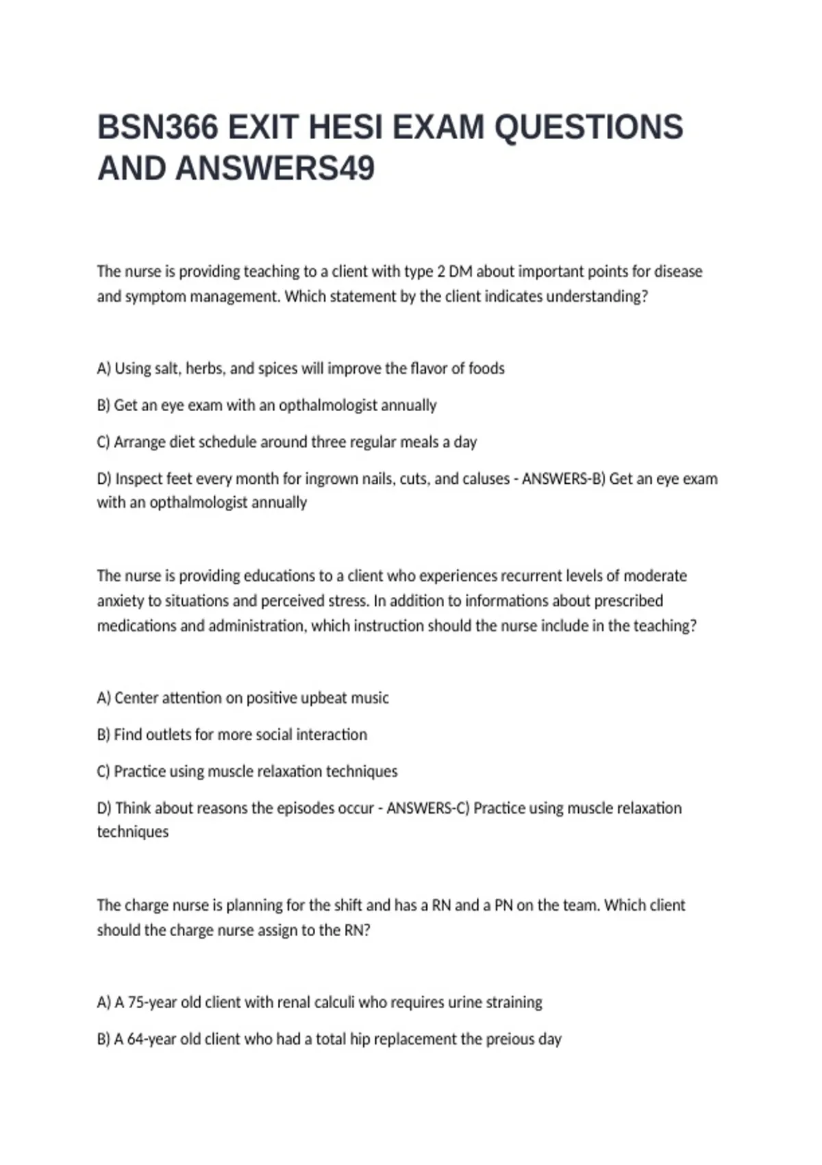 BSN366 EXIT HESI EXAM QUESTIONS