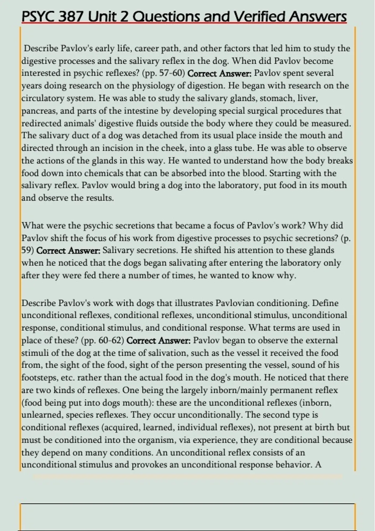 interested in psychic reflexes? (pp. 57-60) Correct Answer: Pavlov spent several