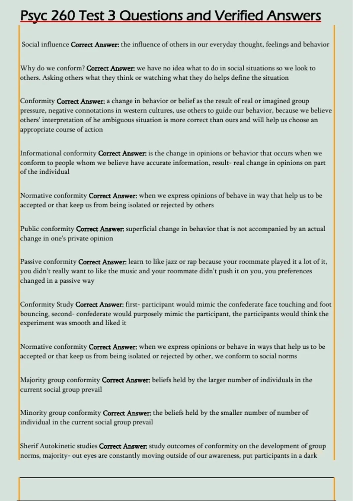 Psyc 260 Test 3 Questions and Verified Answers