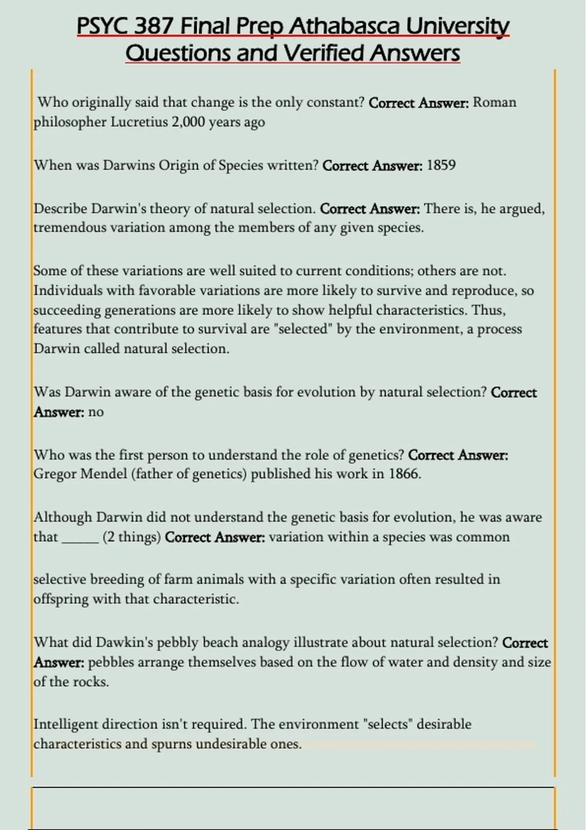 PSYC 387 Final Prep Athabasca University Questions and Verified Answers