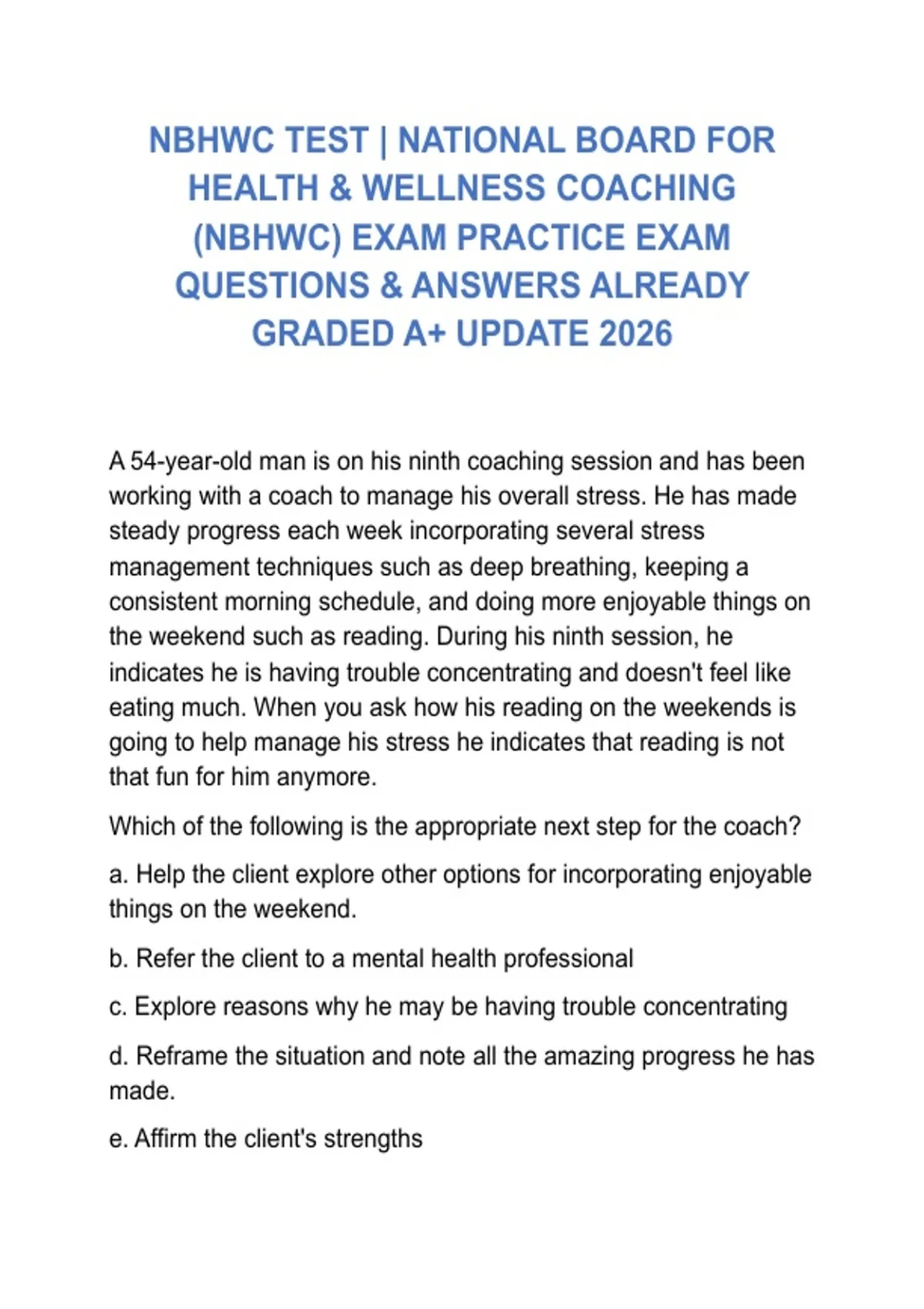 NBHWC TEST | NATIONAL BOARD FOR HEALTH & WELLNESS COACHING (NBHWC) PRACTICE EXAM QUESTIONS & ANSWERS ALREADY GRADED A+ UPDATE 2026