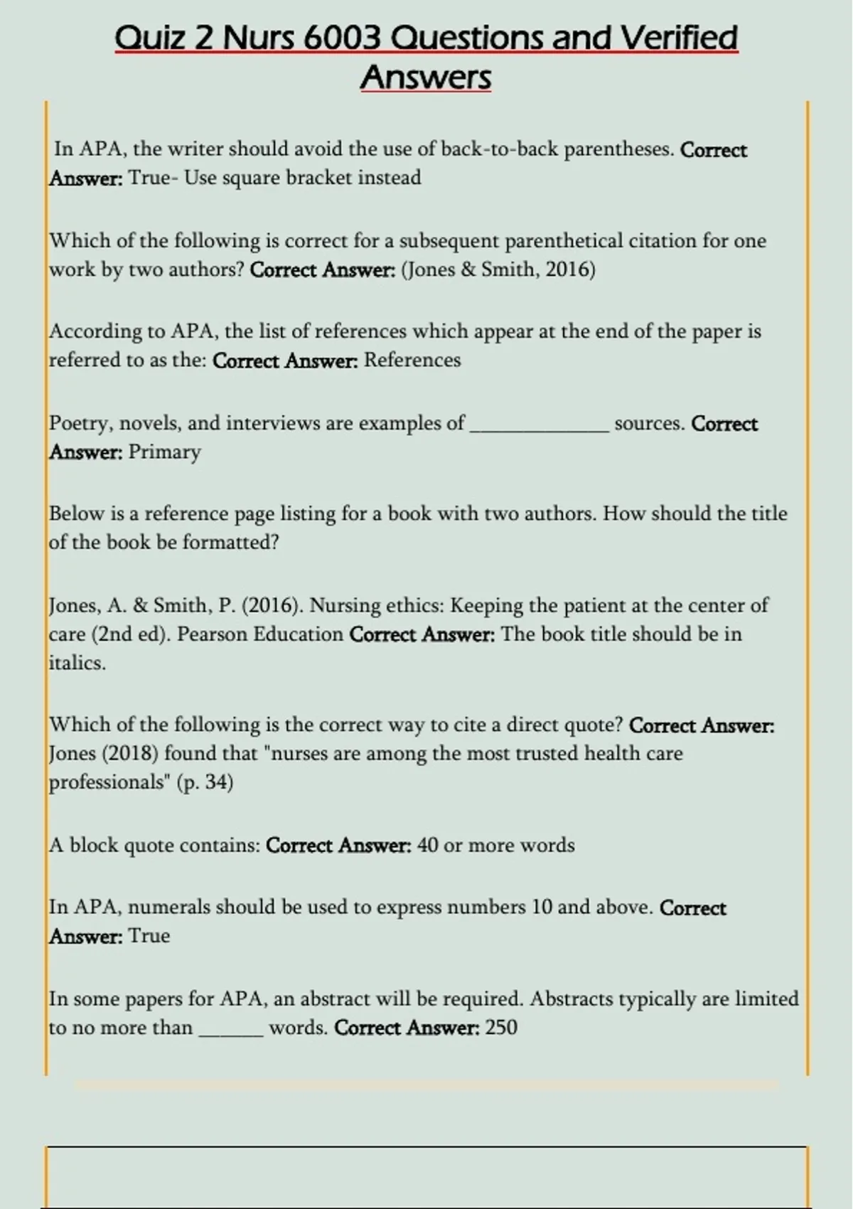 work by two authors? Correct Answer: (Jones & Smith, 2016)