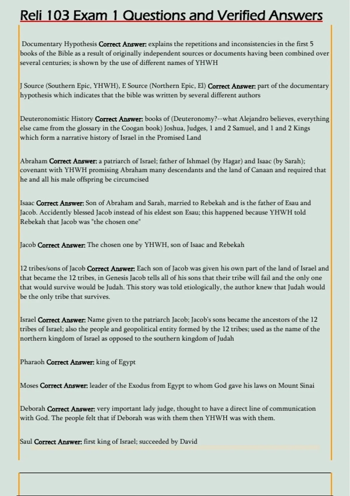 Reli 103 Exam 1 Questions and Verified Answers