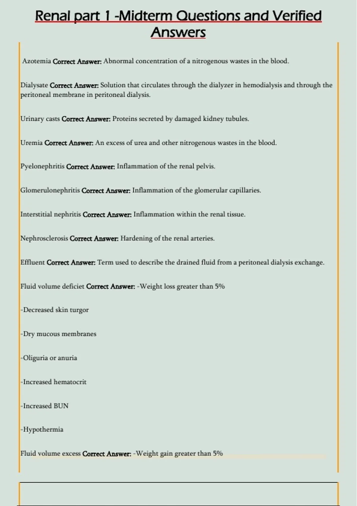 Renal part 1 -Midterm Questions and Verified