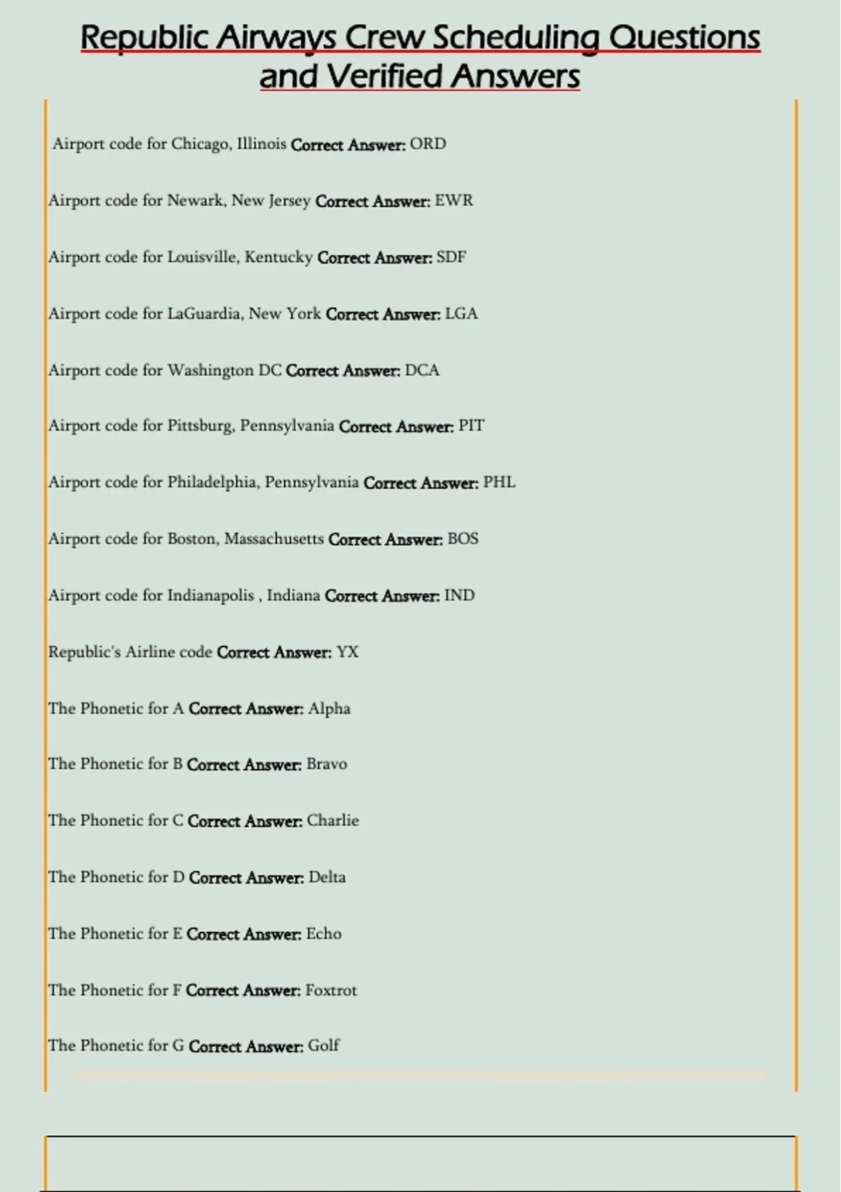 The Phonetic for G Correct Answer: Golf