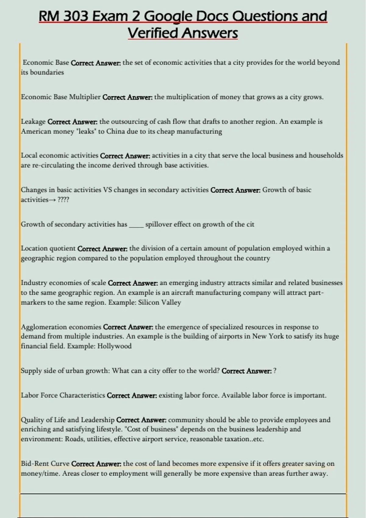Economic Base Multiplier Correct Answer: the multiplication of money that grows as a city grows.