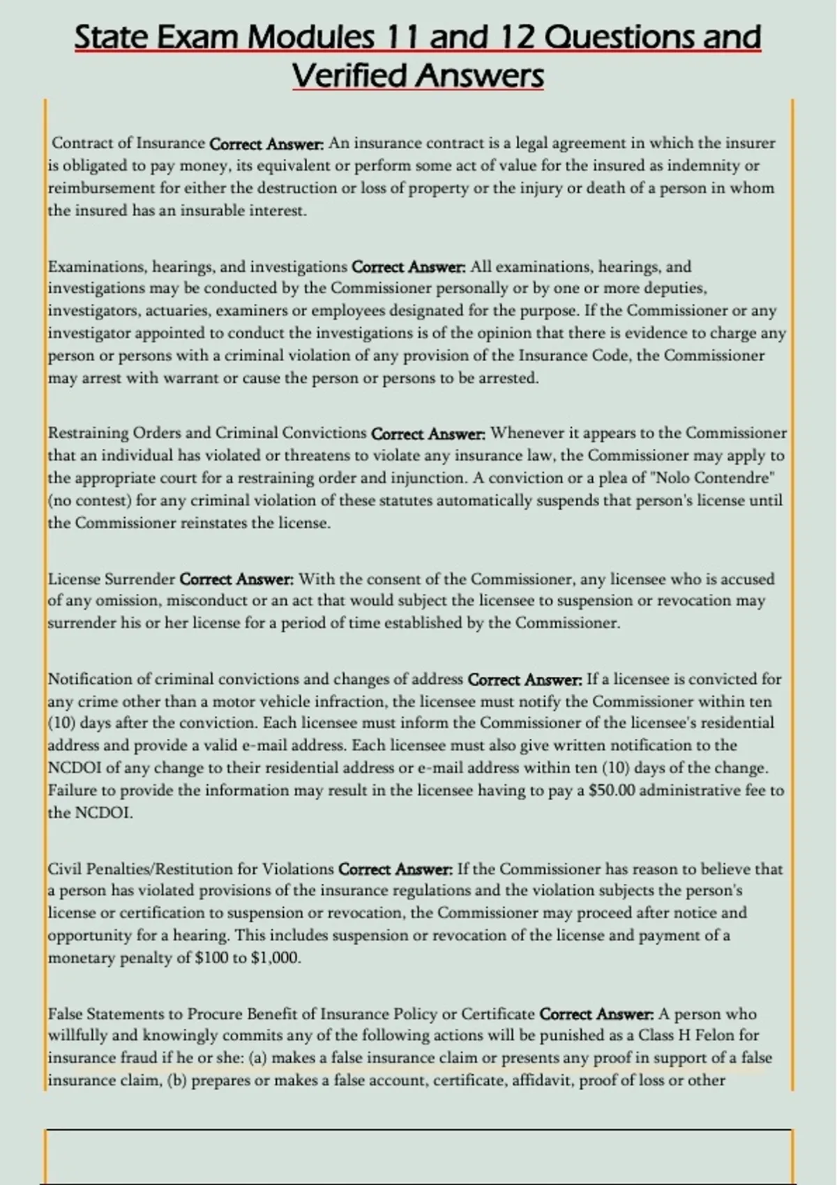 State Exam Modules 11 and 12 Questions and Verified Answers