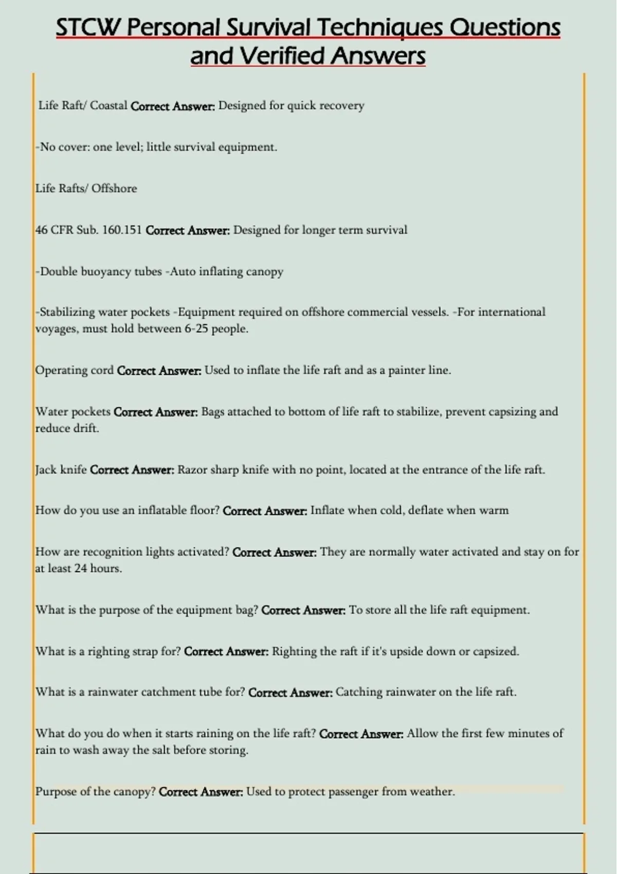 According to the USCG, what are survival craft? Correct Answer: SURVIVAL CRAFT is a craft capable of