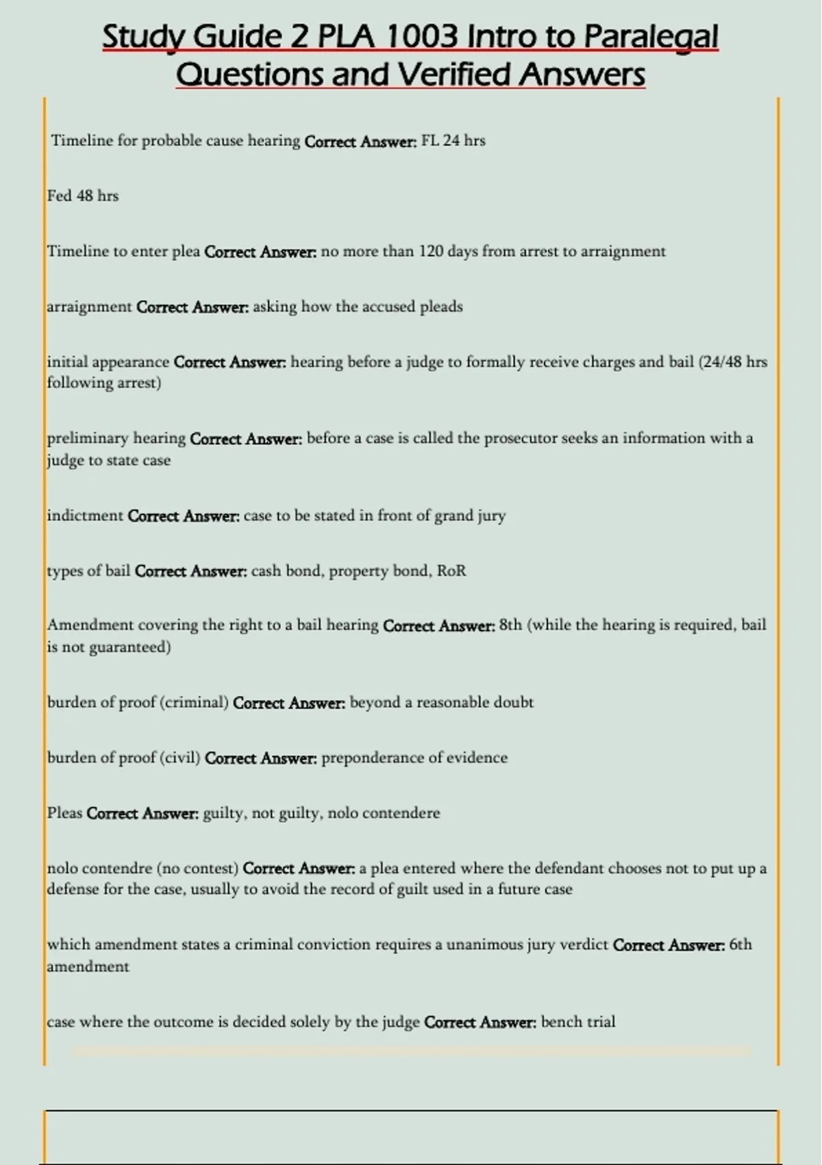 Study Guide 2 PLA 1003 Intro to Paralegal