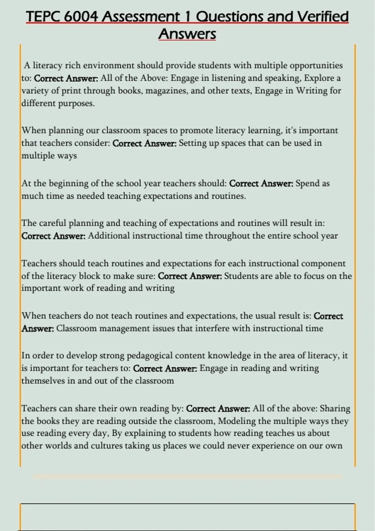 TEPC 6004 Assessment 1 Questions and Verified Answers
