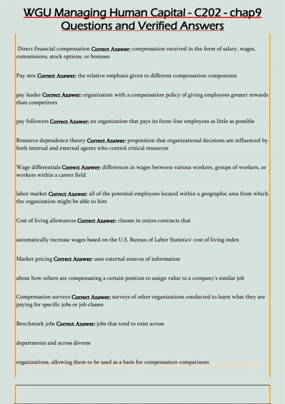 Compensation surveys Correct Answer: surveys of other organizations conducted to learn what they are