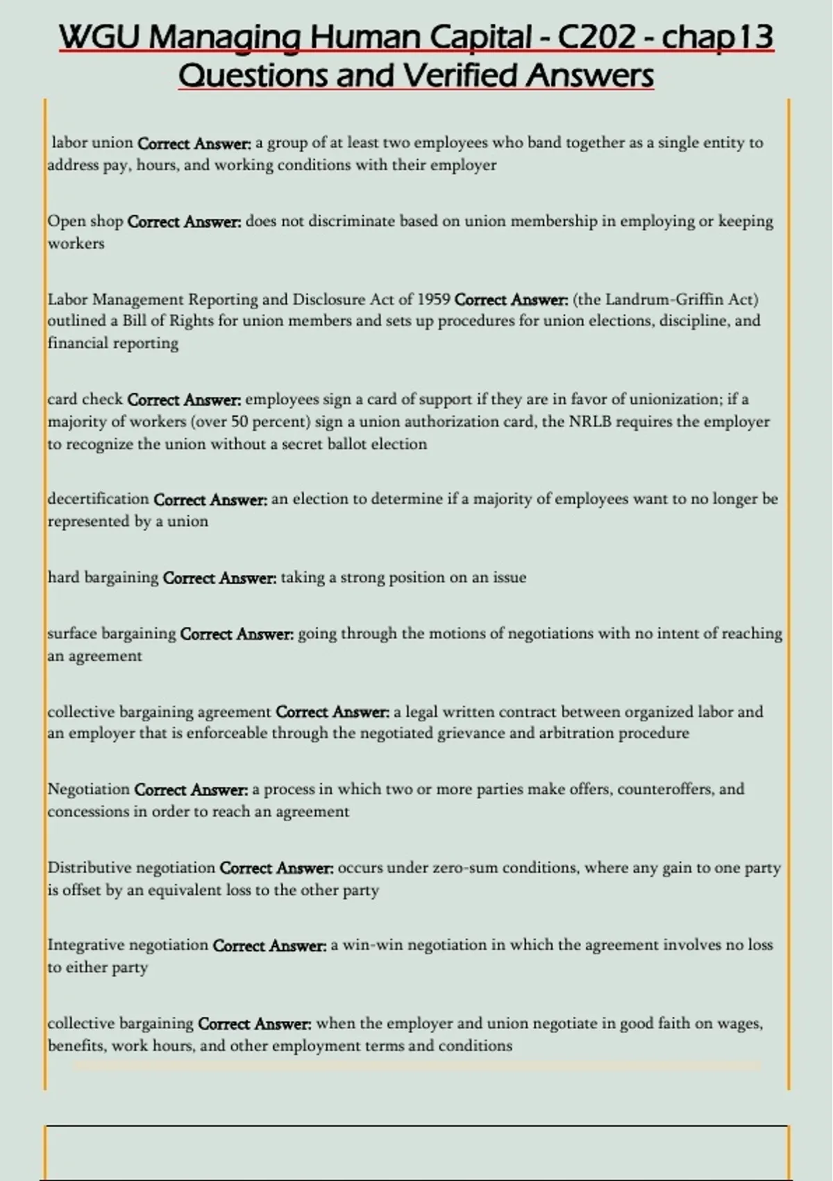 WGU Managing Human Capital - C202 - chap13 Questions and Verified Answers