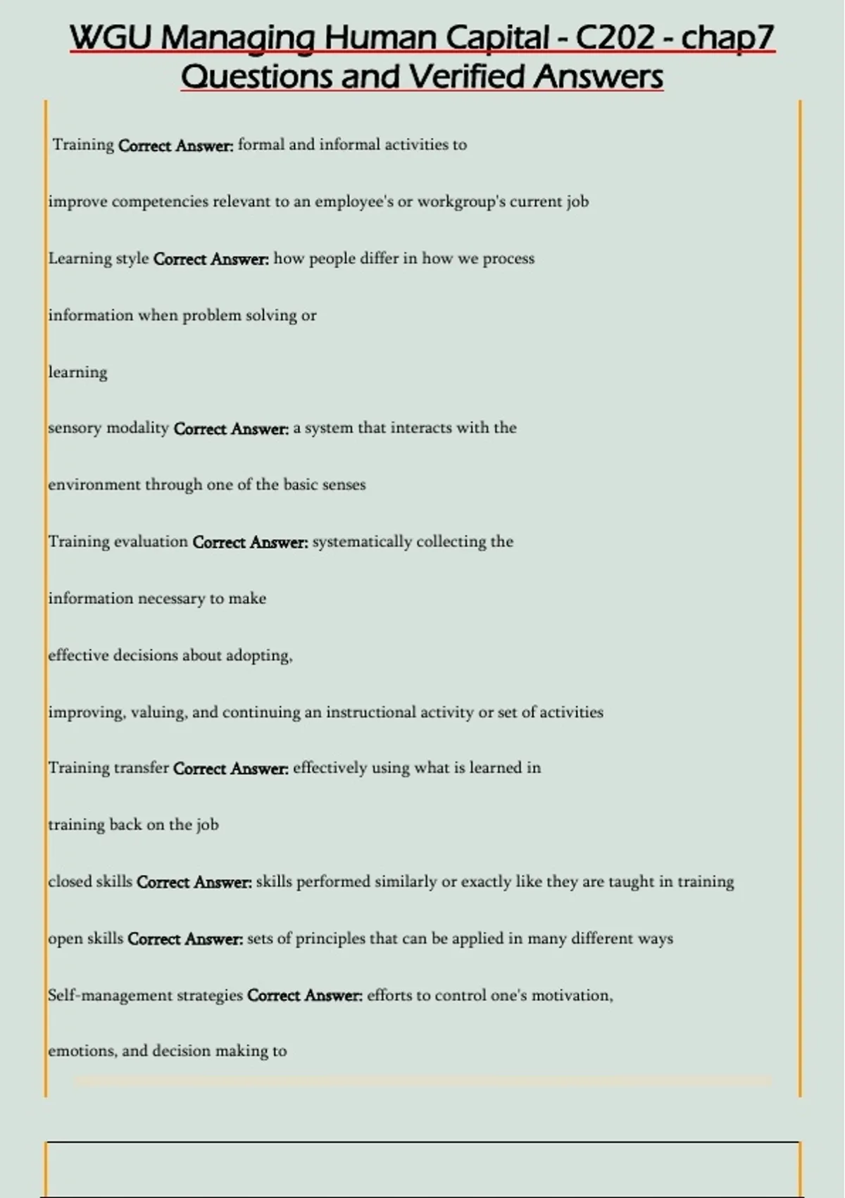 WGU Managing Human Capital - C202 - chap7