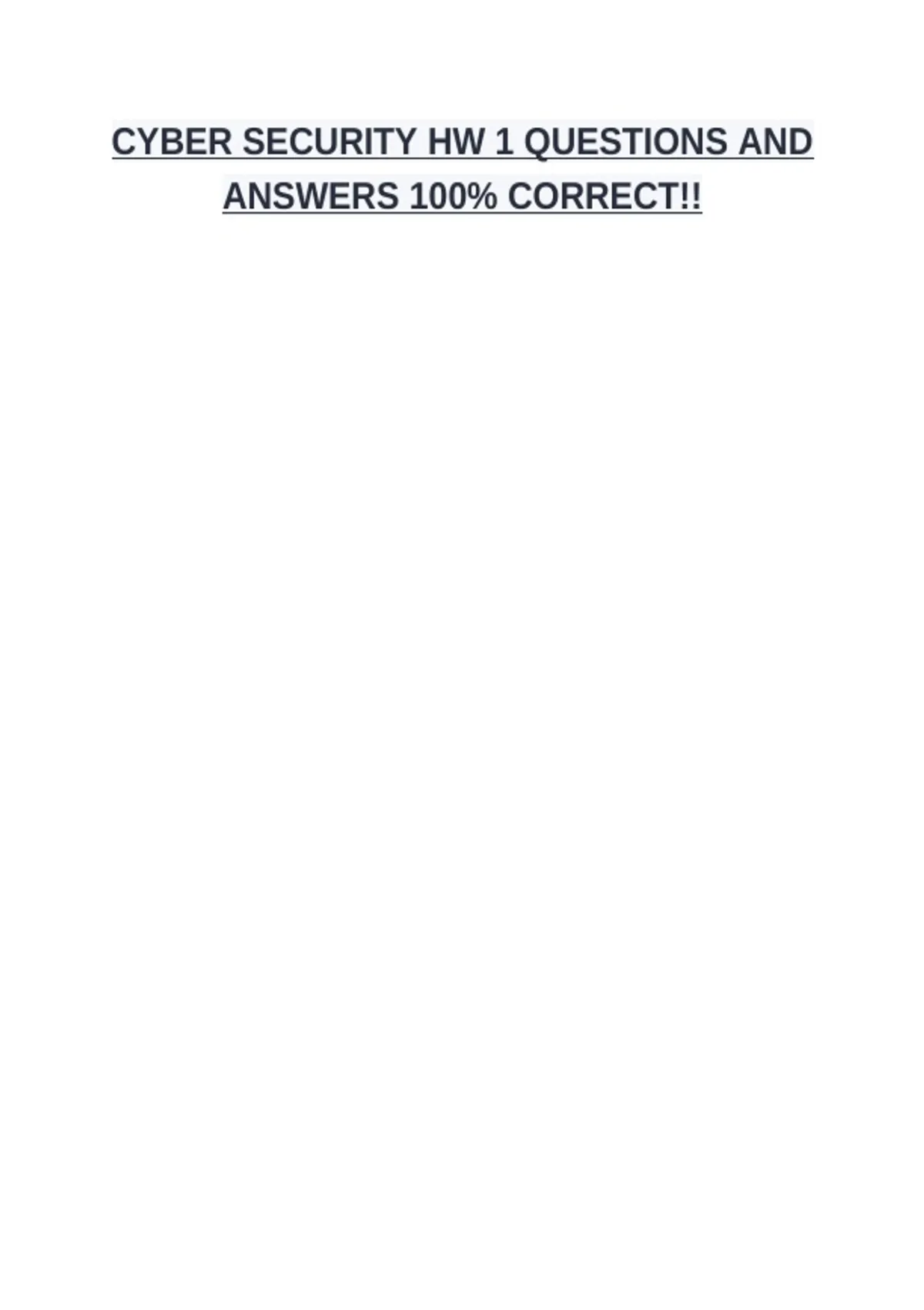 CYBER SECURITY HW 1 QUESTIONS AND ANSWERS 100% CORRECT!!