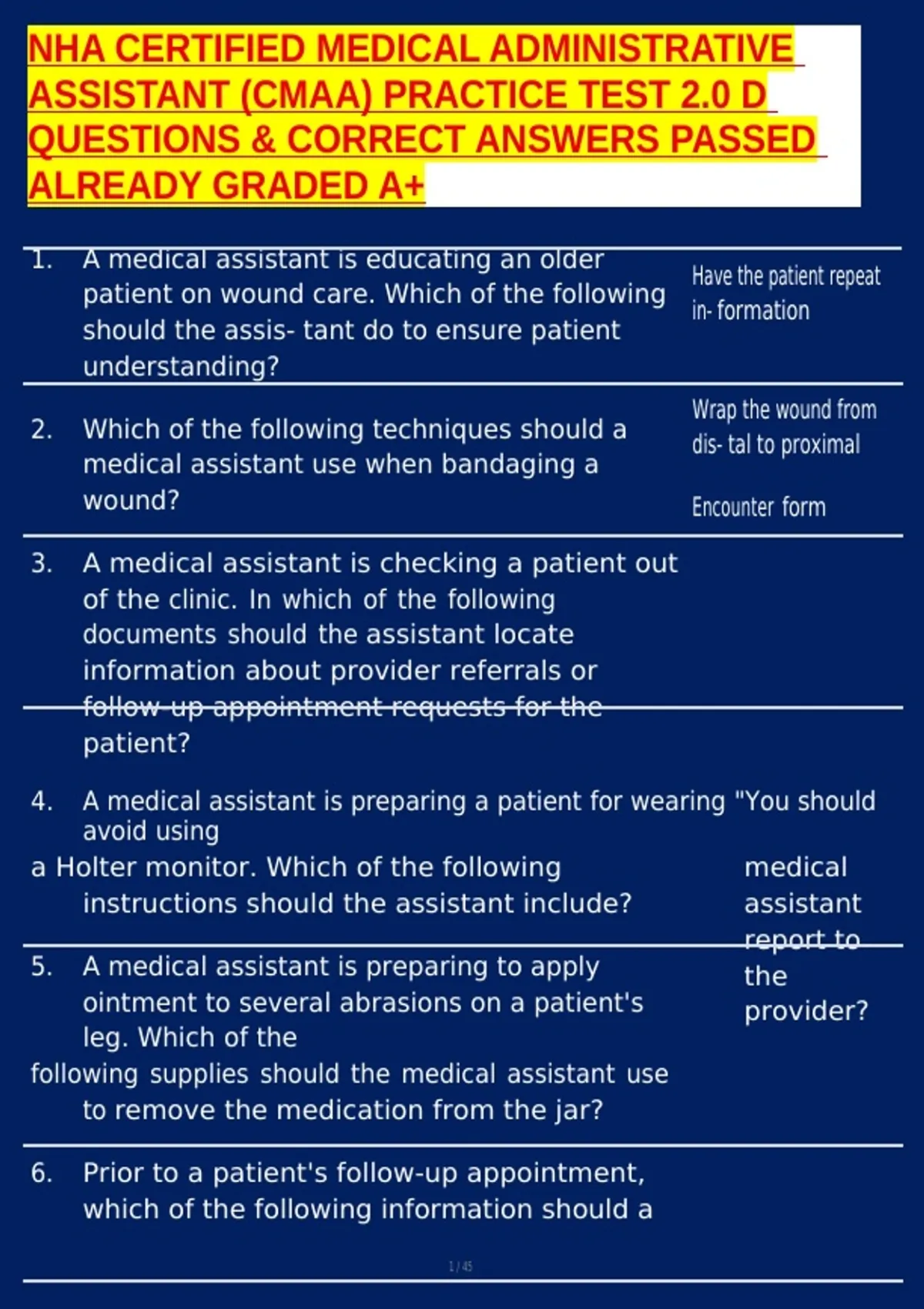 ASSISTANT (CMAA) PRACTICE TEST 2.0 D