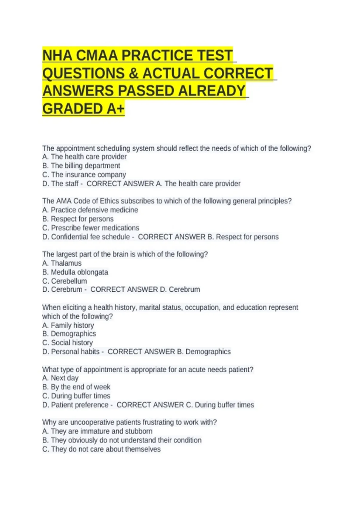 QUESTIONS & ACTUAL CORRECT