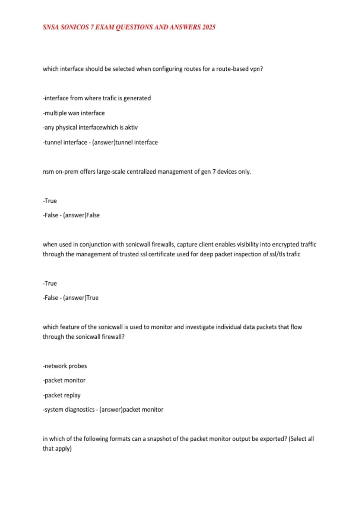, SNSA SONICOS 7 EXAM QUESTIONS AND ANSWERS 2025
