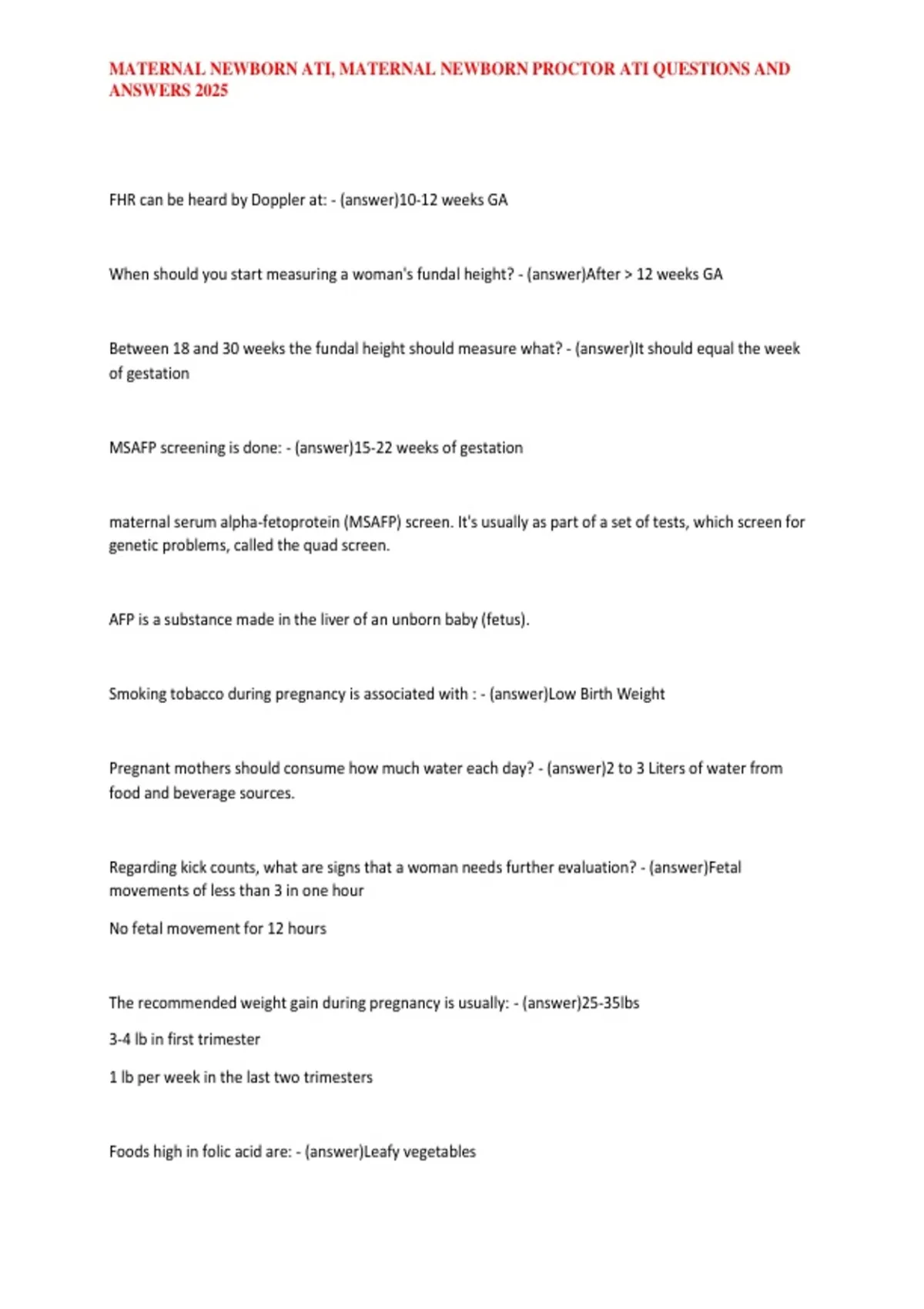 MATERNAL NEWBORN ATI, MATERNAL NEWBORN PROCTOR ATI QUESTIONS AND ANSWERS 2025