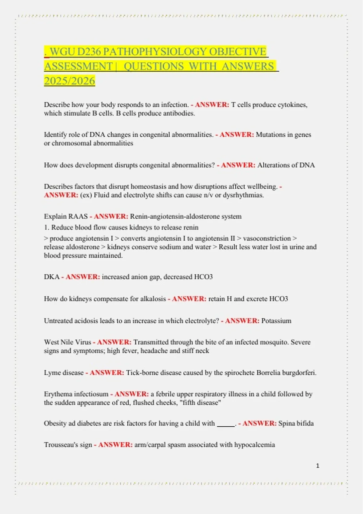 . WGU D236 PATHOPHYSIOLOGY OBJECTIVE ASSESSMENT | QUESTIONS WITH ANSWERS