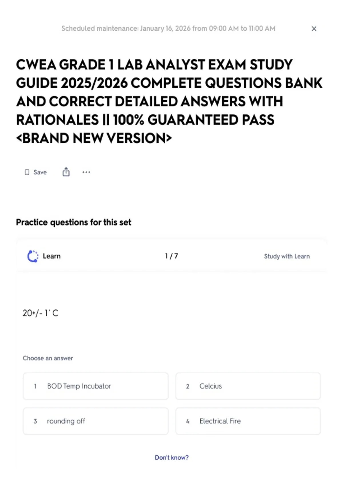 CWEA GRADE 1 LAB ANALYST EXAM STUDY