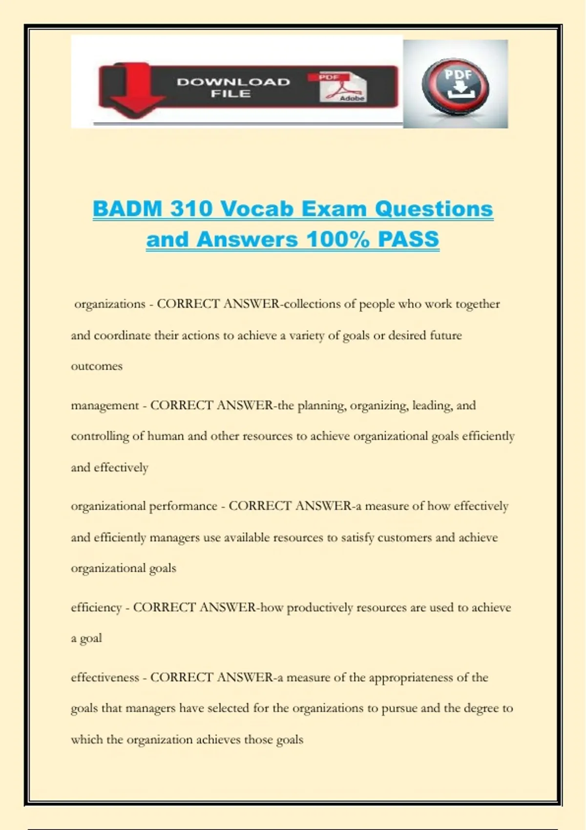 BADM 310 Vocab Exam Questions