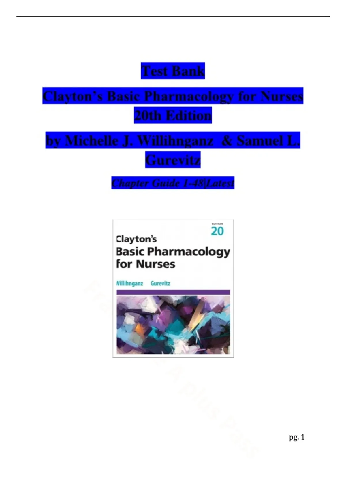 This Test Bank for Clayton’s Basic Pharmacology for Nurses, 20th Edition by Michele J. is a comprehensive exam preparation resource designed specifically for nursing students. It contains chapter-by-chapter NCLEX-style multiple-choice questions with verified correct answers, fully aligned with the 20th edition textbook. The test bank covers essential nursing pharmacology topics including drug classifications, mechanisms of action, therapeutic uses, adverse effects, contraindications, drug interactions, dosage calculations, medication safety, and nursing considerations. Questions are structured to strengthen clinical judgment, safe medication administration, and exam readiness. Ideal for RN, BSN, PN/LPN, and nursing bridge program students, this resource is perfect for quizzes, midterms, finals, HESI, ATI, and NCLEX preparation. It helps students practice real exam-level questions, identify weak areas quickly, and improve overall academic performance. Also useful for instructors preparing pharmacology assessments.