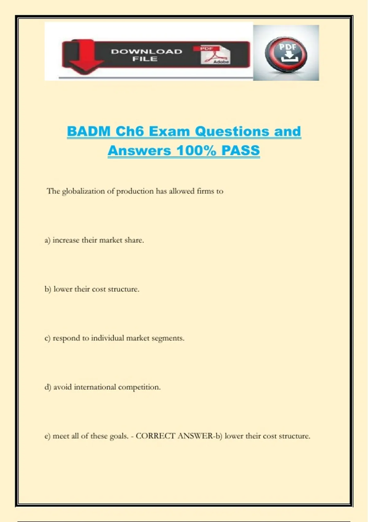 BADM Ch6 Exam Questions and Answers 100% PASS