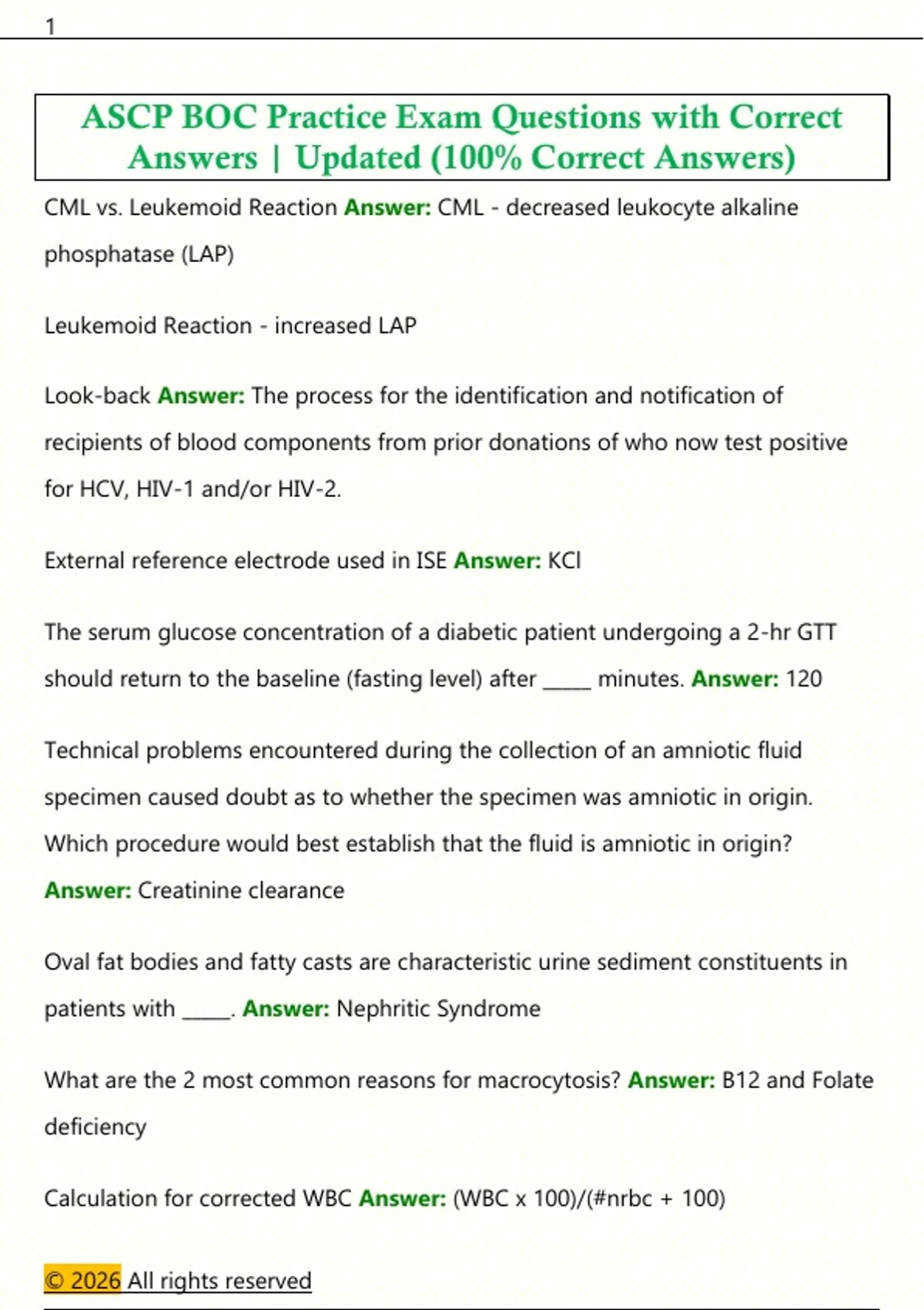 ASCP BOC Practice Exam Questions with Correct