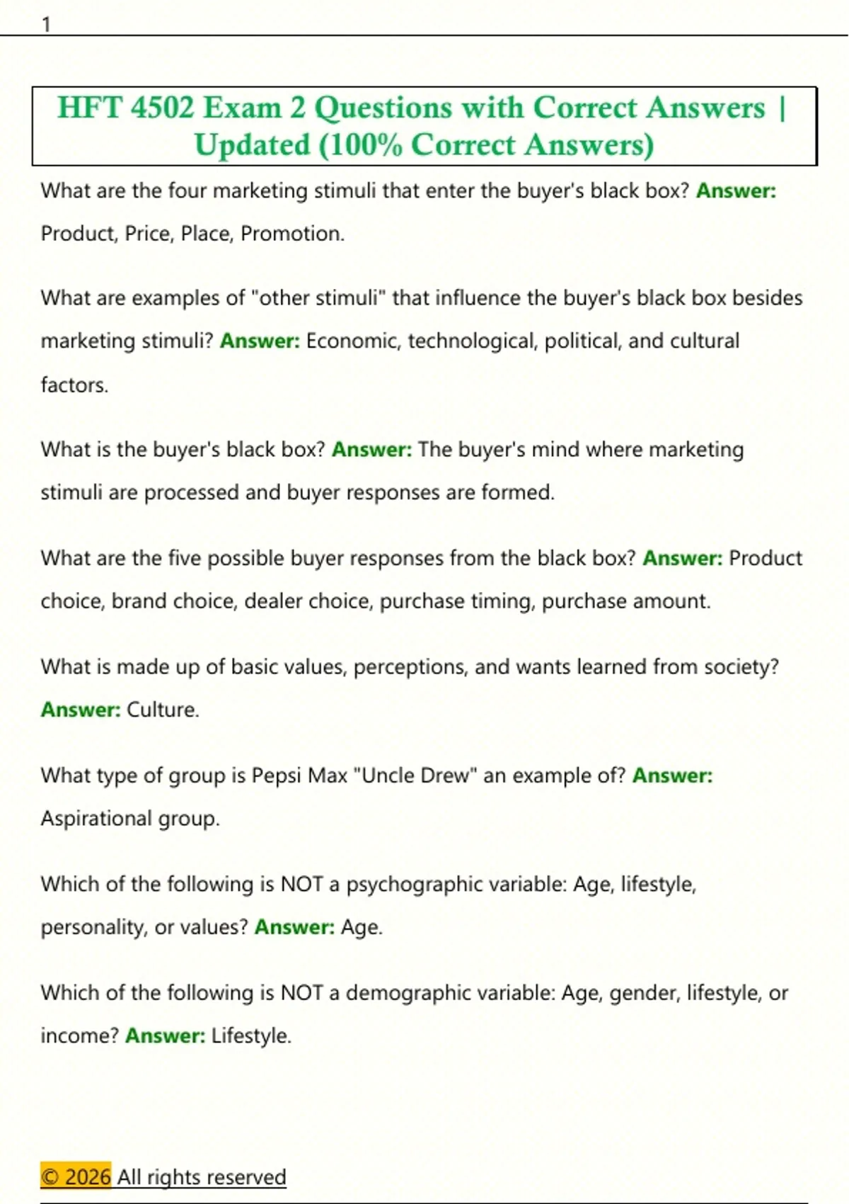 marketing stimuli? Answer: Economic, technological, political, and cultural