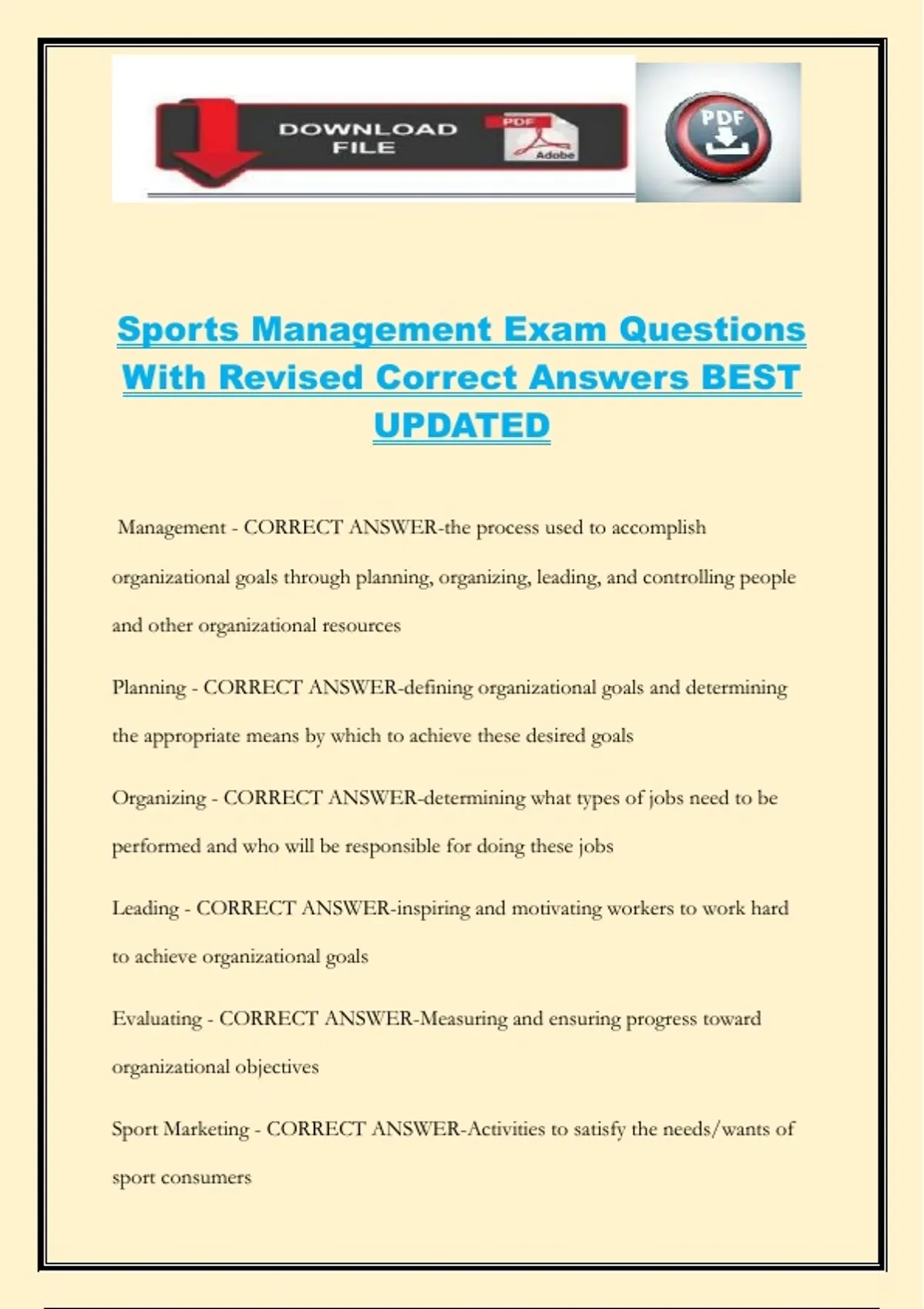 Sports Management Exam Questions With Revised Correct Answers BEST UPDATED