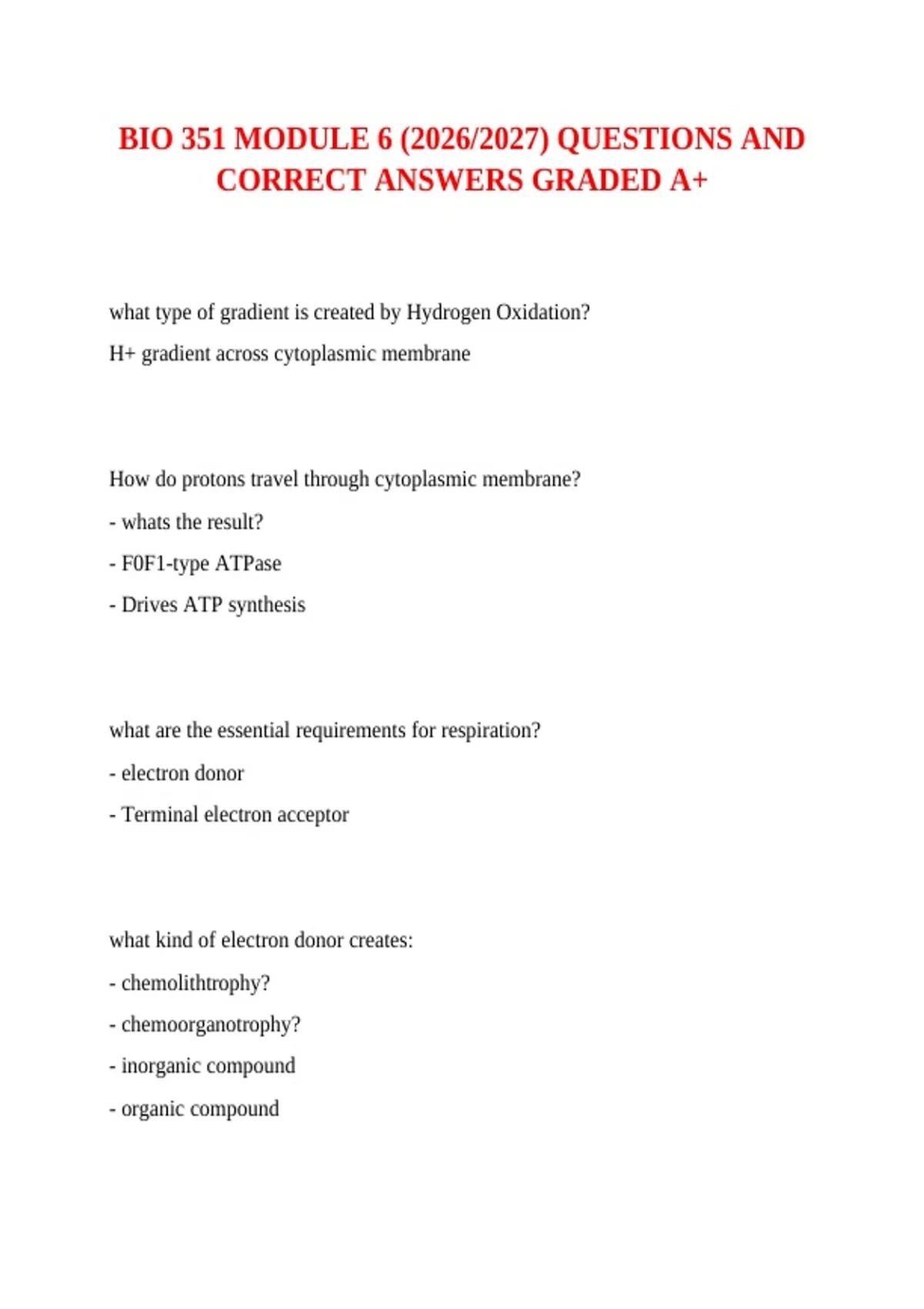 BIO 351 MODULE 6 (2026/2027) QUESTIONS AND CORRECT ANSWERS GRADED A+