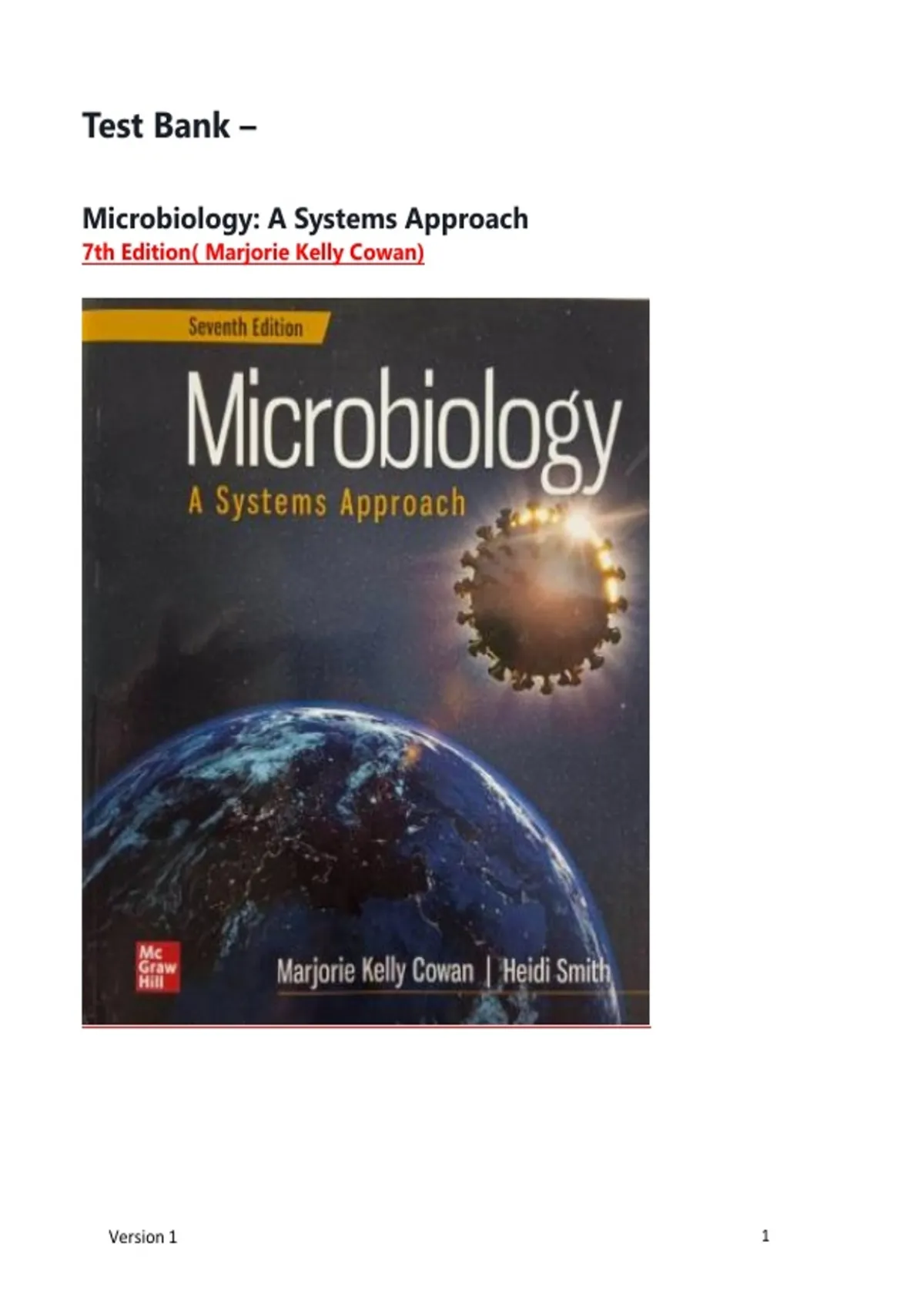,Test Bank For Microbiology, A Systems Approacℎ, 7tℎ Edition, Marjorie Kelly Cowan, ℎeidi