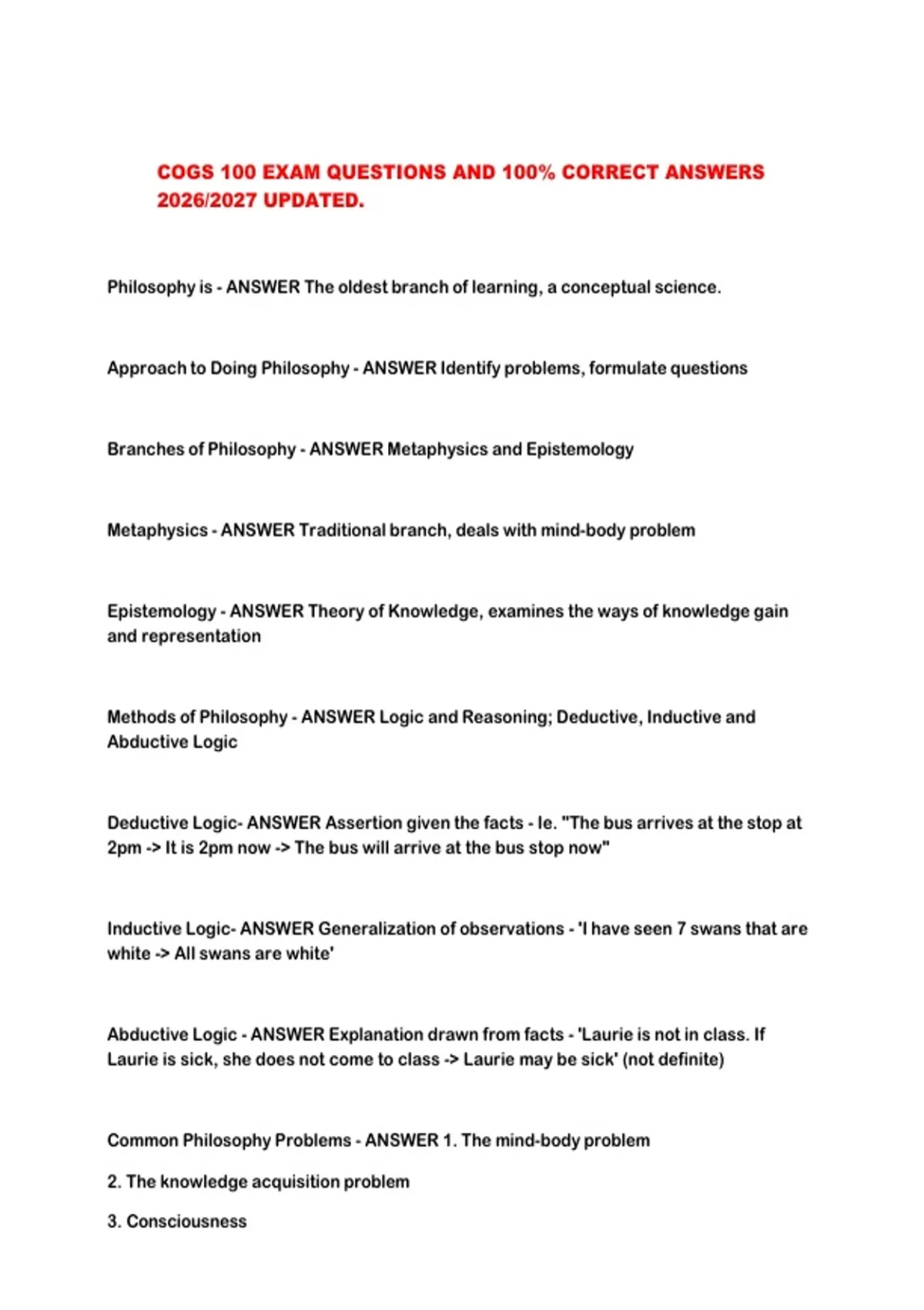 Methods of Philosophy - ANSWER Logic and Reasoning; Deductive, Inductive and