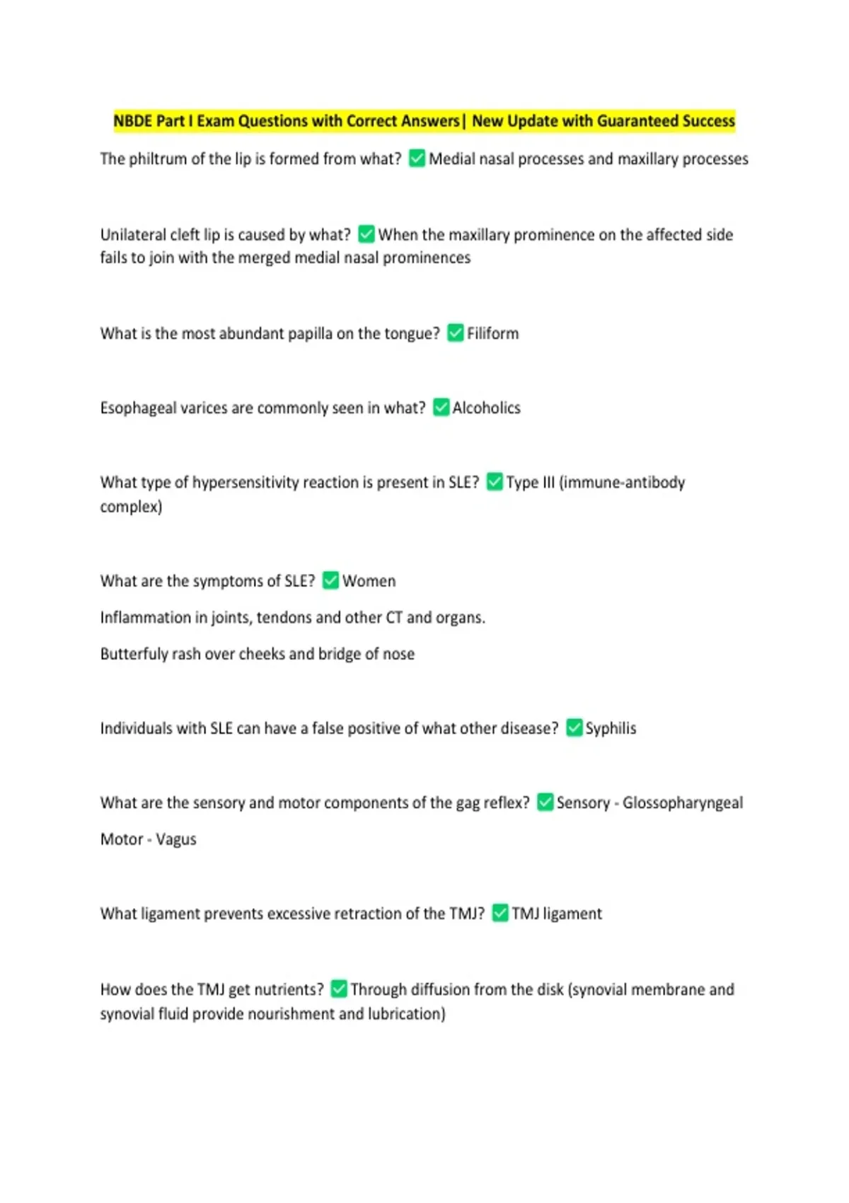 NBDE Part I Exam Questions with Correct Answers| New Update