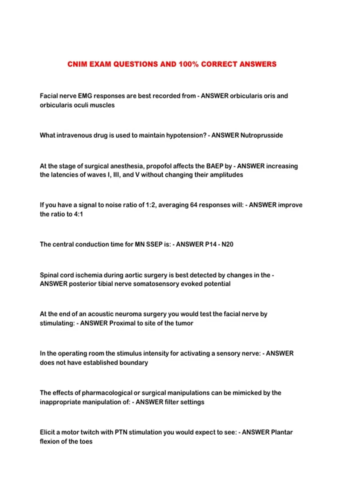 ANSWER posterior tibial nerve somatosensory evoked potential