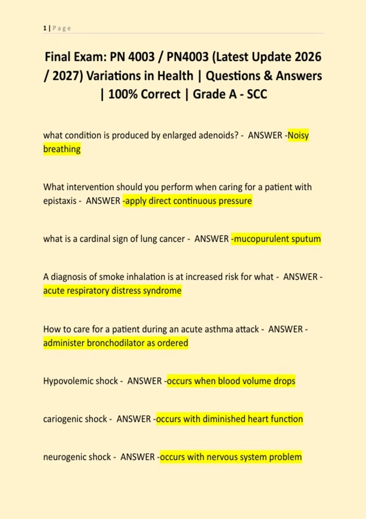 Final Exam: PN 4003 / PN4003 (Latest Update 2026 / 2027) Variations in Health | Questions & Answers | 100% Correct | Grade A - SCC