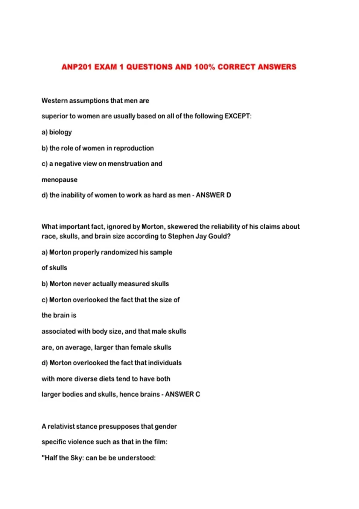 superior to women are usually based on all of the following EXCEPT: